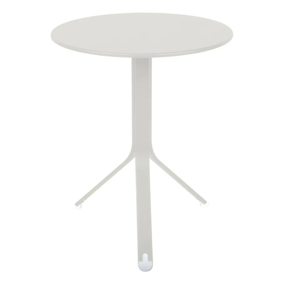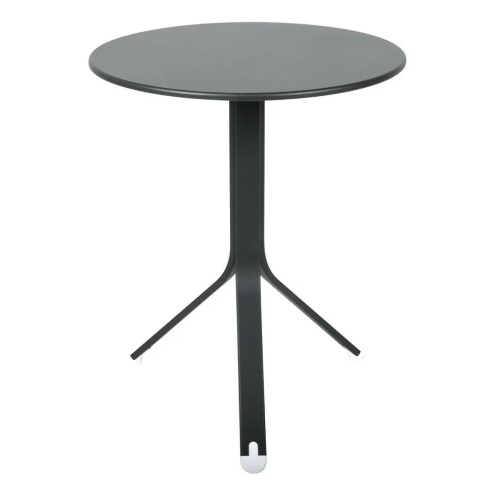 Der Rest’o Gartentisch klappbar Ø60cm wurde von Tristan Lohner für die Marke Fermob entworfen. Eigentlich wurde das Modell für die Gastronomie designt, mittlerweile hat es auch private Balkone und Terrassen erobert. Markantes Markenzeichen sind die weißen Schutzkappen an der Unterseite der Füße, die einen interessanten Kontrast zum Metallgestell bilden, das in verschiedenen Farben erhältlich ist.