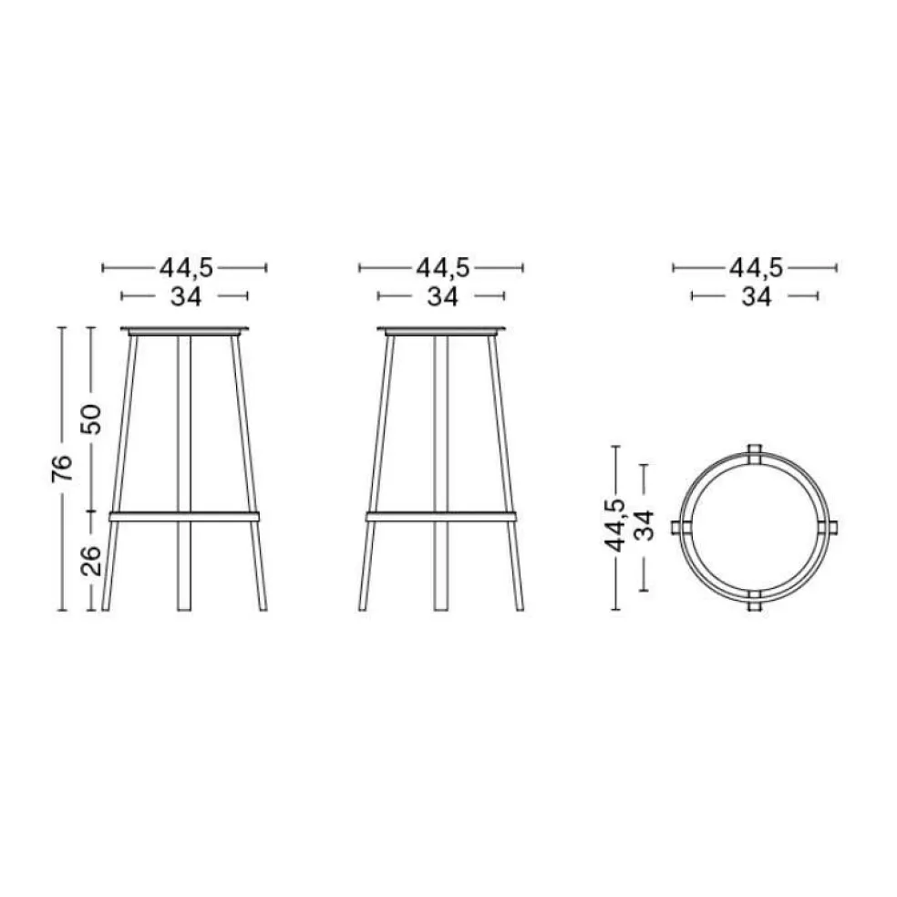 | Abmessungen | Höhe: 76cm Durchmesser: 44.5cm Sitzhöhe: 76cm |