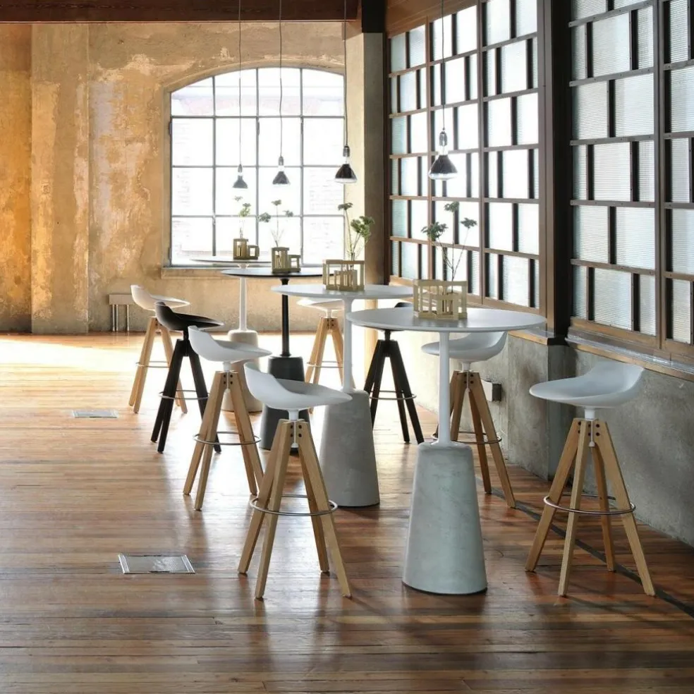 Der Rock Bartisch wurde von der französischen Design-Ikone Jean-Marie Maussaud für den Hersteller MDF Italia entworfen. Die Kühnheit der Entwürfe des Designers genießt teilweise Weltruf. Der Rock Bartisch steht dafür geradezu exemplarisch und vereint so unterschiedliche Baustoffe wie eine mitteldichte Holzfaserplatte und den massiven Betonfuß zu einer einzigartigen, gewagten, aber sehr überzeugenden Gesamtkomposition.