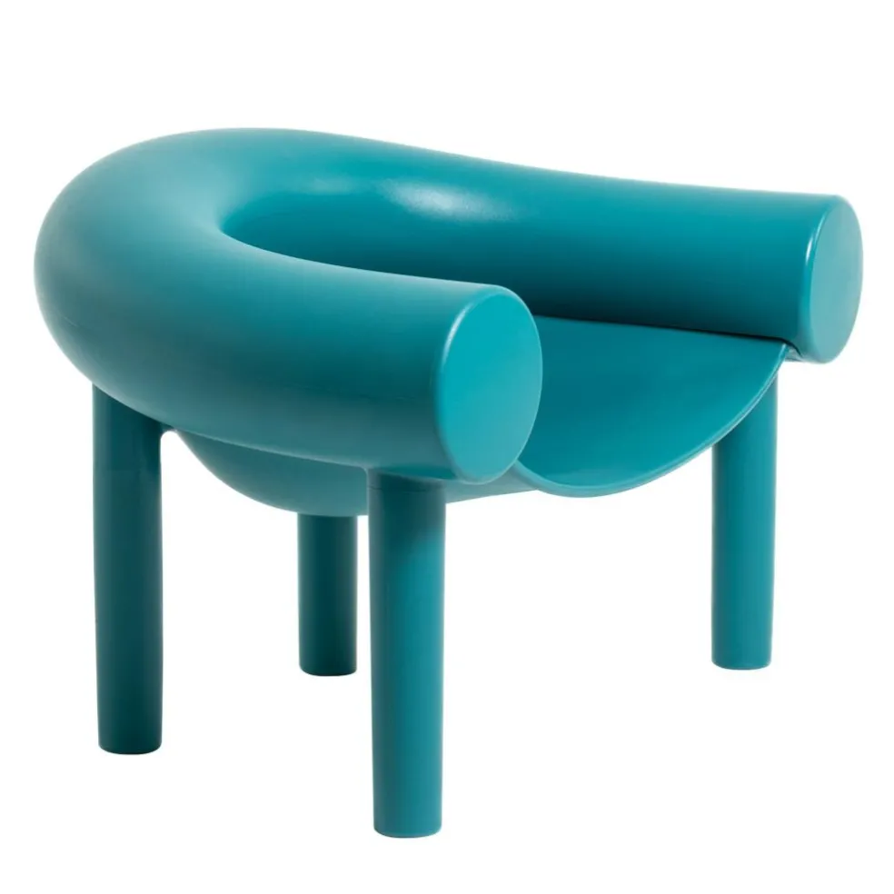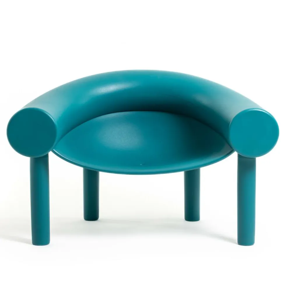 Wie eine Figur aus einem Zeichentrickfilm steht der Sam Son Gartensessel da: Rücken- und Armlehnen sind aus einem walzenartigen Stück geformt, das sich gleich einer Plastilinrolle um die Sitzschale biegt. Diese wird von vier zylindrischen Stelzenbeinen getragen. Sie verfügt über eine tiefe Sitzmulde und fällt nach hinten hin leicht ab, was einen bequemen Sitz verspricht. Hergestellt aus Polyethylen zeichnet sich der Sam Son Gartensessel durch eine hohe Robustheit aus. Seine Oberfläche ist wasserabweisend und strapazierfähig. Die kräftige Farbe macht den überdimensional proportionierten Gartensessel zudem zu einem auffälligen Hingucker. Er ist eine verspielte Einrichtung für ein Atrium oder eine stylishe Terrasse und macht sich auch gut neben dem Pool oder mitten in einer Wiese. Darüber hinaus passt der Sam Son Gartensessel perfekt in öffentliche Freiräume oder in den Garten eines Designhotels.