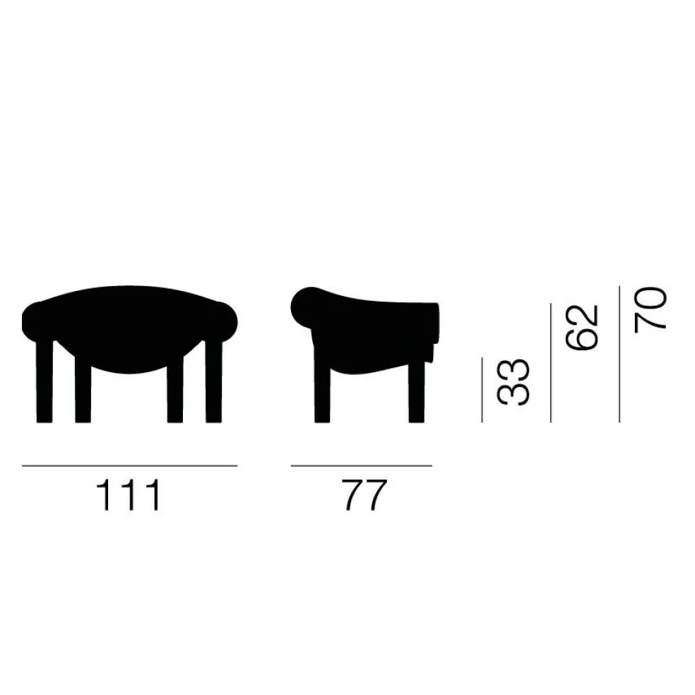 Der Sam Son Gartensessel ist 111 cm breit, 77 cm hoch und 70 cm tief. Er hat eine Sitzhöhe von 33 cm und wiegt 16 kg. Seine Armlehnen sind 62 cm hoch.