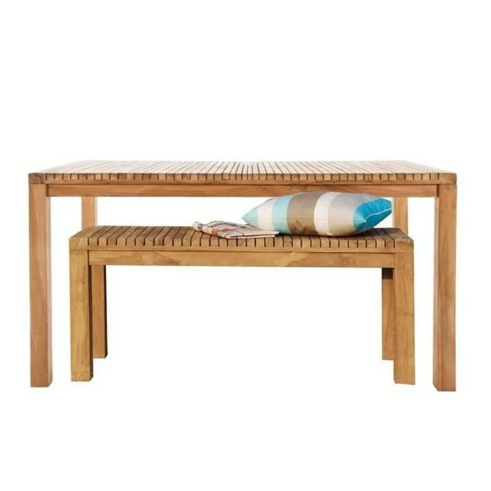 Das Samoa Gartenset mit Bank bietet bequem vier Leuten Platz, um gemeinsam zu grillen, zu essen und den Sommer unter freiem Himmel zu genießen. Nicht nur besonders dekorativ, sondern auch absolut robust und outdoor-tauglich ist das Samoa Gartenset mit Bank dank seines Werkstoffes Teakholz.