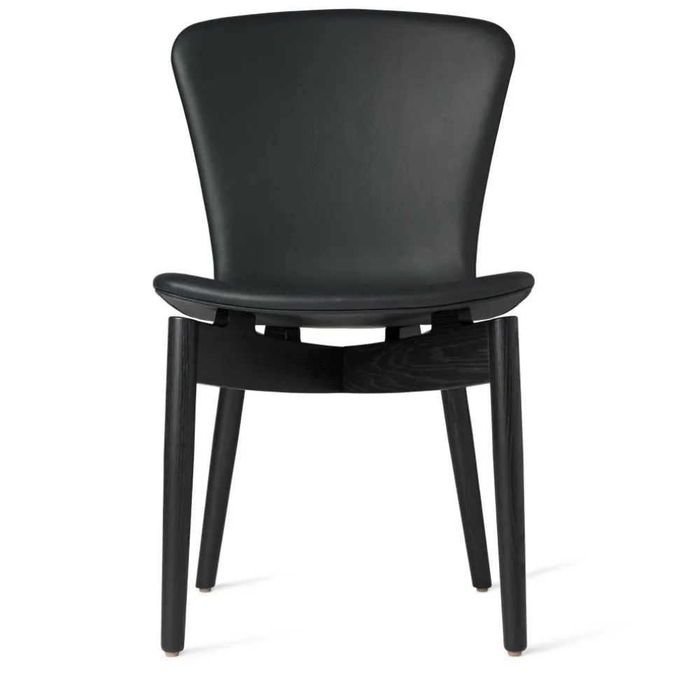 Bei der Fertigung des Shell Stuhl Eiche Schwarz zeigt sich der Designer umweltbewusst: Er verwendet edles Leder, das mit dem Label Nordic Swan prämiert ist. Somit stammt der Rohstoff aus nachhaltiger Fertigung. Die Sitzfläche, die direkt in eine ergonomisch geformte Rückenlehne übergeht, ist in Handarbeit genährt. Befestigt ist sie auf einem Gestell aus Eichenholz: Es trägt das FSC®-Label und stammt somit aus ökologischer Forstwirtschaft. Vier leicht ausgestellte Beine sorgen für sicheren Stand, wobei an der Unterseite Gleiter montiert sind. Die Beine führen sternförmig unter der Sitzfläche zusammen.