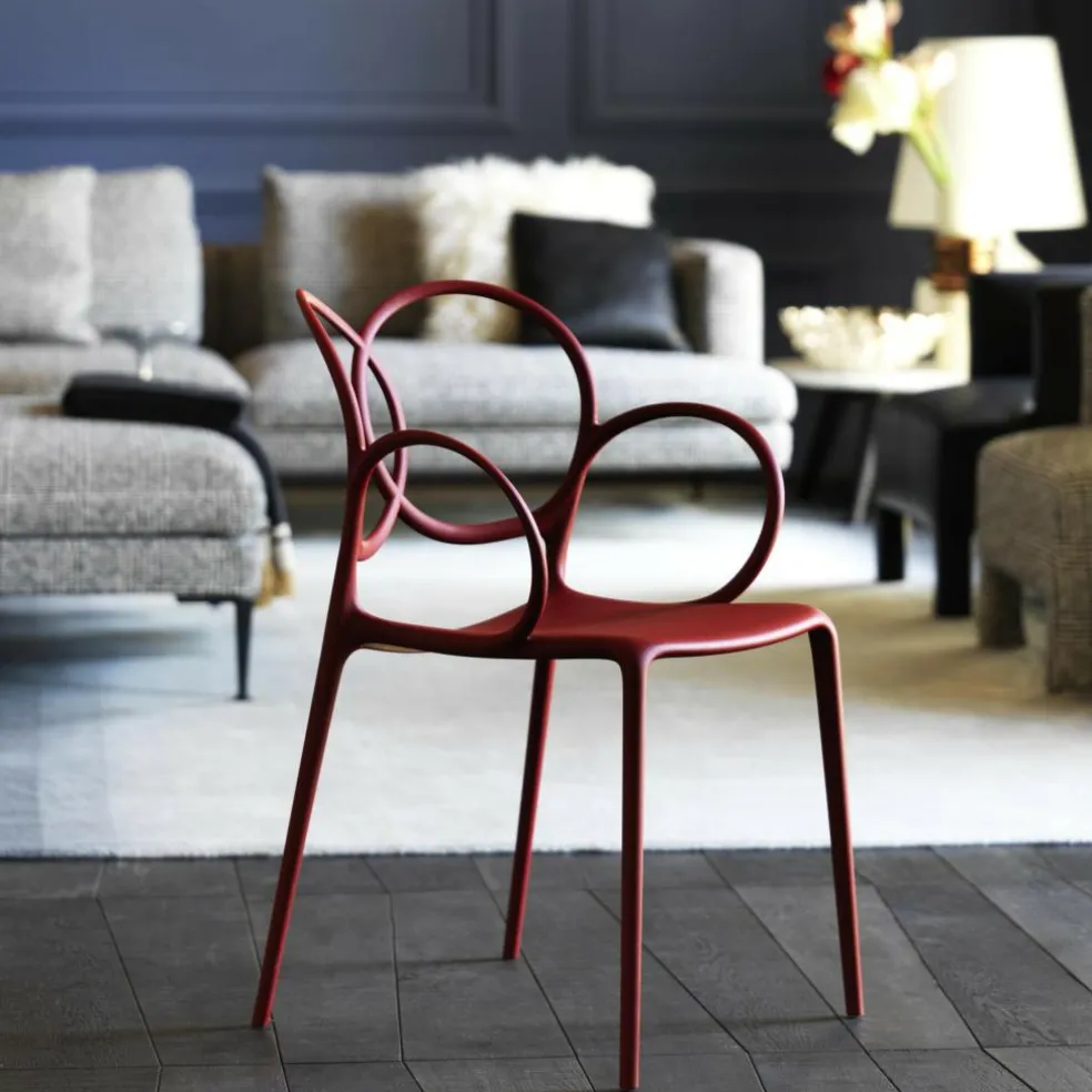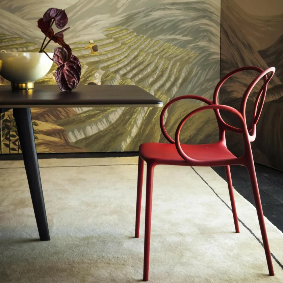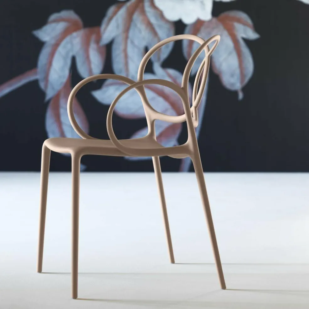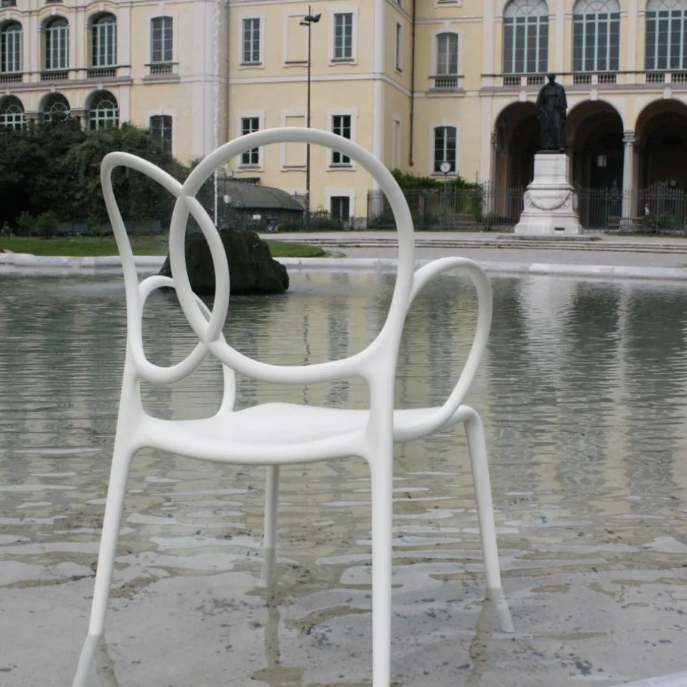 Der Sissy Gartenarmlehnstuhl wurde von Ludovica + Roberto Palomba für die Marke Driade entworfen. Dem Designerduo aus Italien gelingt es perfekt, das Design vergangener Tage in die Gegenwart zu transportieren. Wie bei jedem Objekt der beiden Künstler entwarfen sie den Sissi Gartenlehnstuhl mit dem Ziel, ein Wohlfühlmöbel für seinen Besitzer zu kreieren. Der Sissi Gartenlehnstuhl lässt die alte K.-u-k.-Monarchie Österreichs wieder aufleben. Das verspielte Möbel hätte sich in den mondänen Wohnstätten der Kaiserin Elisabeth, die ihre Fans heute noch liebevoll Sissi nennen, sicher gut ausgenommen. Angelehnt an die lange österreichische Möbeltradition präsentiert sich der Sissi Gartenarmlehnstuhl in verspieltem Design. Die Rückenlehne besteht aus kunstvoll geschwungenen Stäben, die durch Fiberglas verstärkt wurden. Die abgerundeten Kanten verleihen der Sitzgelegenheit ein stilvolles Aussehen. Der Sissi Gartenarmlehnstuhl punktet nicht nur mit seiner eleganten Optik, sondern auch mit seiner Vielseitigkeit. Da er aus robustem Kunststoff gefertigt ist, kann er auch im Outdoorbereich eingesetzt werden. Im Garten oder auf der Terrasse macht er eine ebenso gute Figur wie im Wohn- oder Esszimmer. Auch in Wartezimmern, in Hotellobbys oder Gastronomiebetrieben sorgt er für stilvolles Ambiente. Praktisch ist außerdem, dass sich der Sissi Gartenarmlehnstuhl bequem stapeln lässt und dank seines geringen Gewichts an jedem beliebigen Ort platziert werden kann.