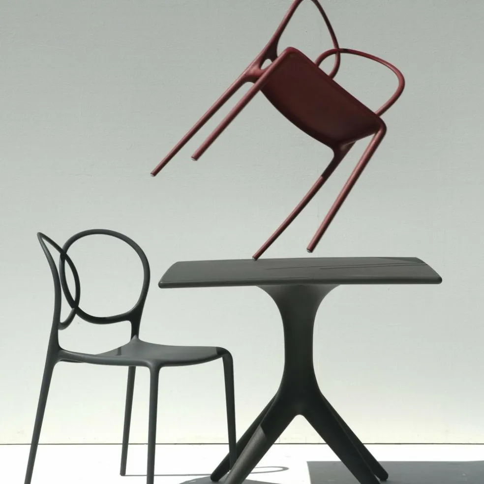 Der Sissi Gartenstuhl wurde von Ludovica Palomba und Roberto Palomba für die Marke Driade entworfen. Der Name bezieht sich auf die bekannte österreichische Kaiserin Elisabeth, die liebevoll Sissi genannt wurde. Zu ihren Lebzeiten im 19. Jahrhundert waren ähnlich geformte Stühle beliebt: Sie wurden von Wiener Handwerkstätten erzeugt und zeichneten sich mit ornamentartigen Rundungen aus.