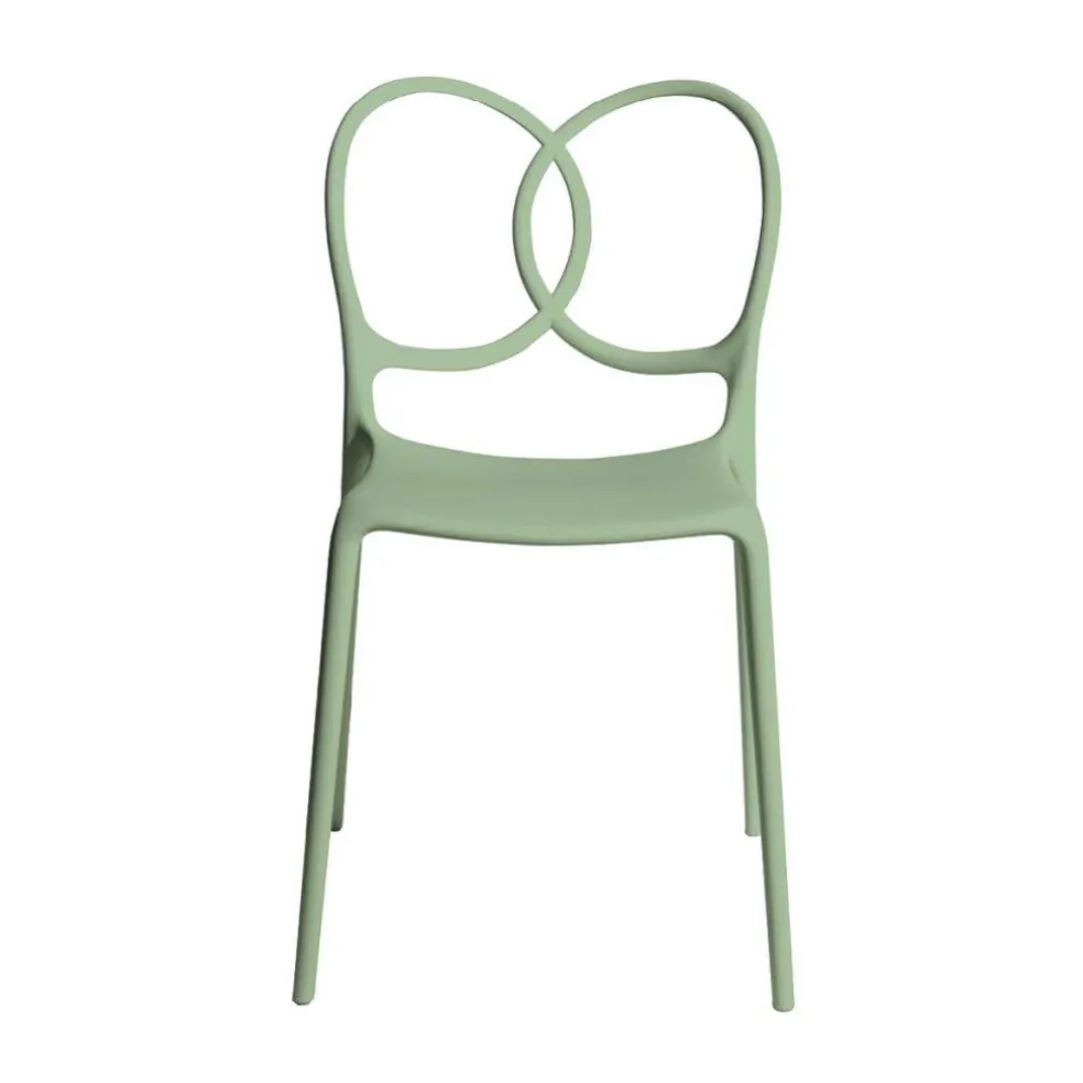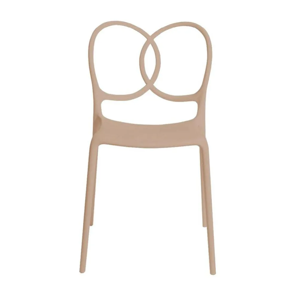 Der Sissi Gartenstuhl verströmt mit seiner femininen Silhouette wohnliches Flair. Die Rückenlehne ist aus zwei Ringen zusammengesetzt, die sich in der Mitte schneiden. Die Sitzfläche ist leicht tailliert und die Beine sind leicht nach außen gestellt. Hergestellt wird der Sissi Gartenstuhl aus Polypropylen-Copolymer mit einem Glasfaseranteil. Die Füße werden aus halbweichem Polyethylen gefertigt. Das Material des Stuhls ist ideal für den Außenbereich: Es ist wetterfest und robust. Der Stuhl stellt im Garten, auf der Terrasse oder im Freibereich eines Cafés oder Restaurants eine bequeme Sitzgelegenheit dar.