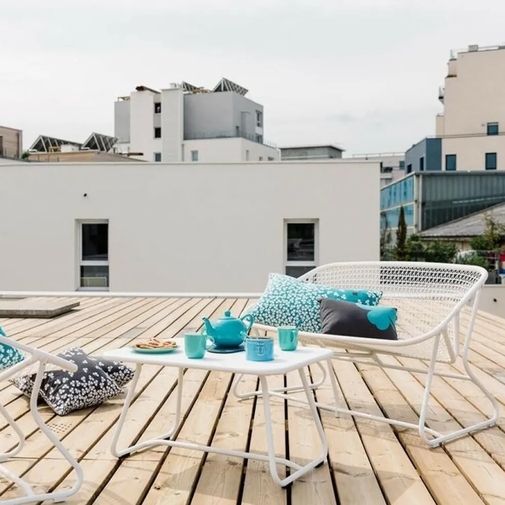 Der Sixties Garten-Beistelltisch wurde von Frédéric Sofia für die Marke Fermob entworfen. Er gehört zu einer Serie von Outdoormöbeln, deren formales Design einen Hauch von Retro versprüht. Daneben bestechen die Sixties-Modelle mit ihrer hochwertigen Verarbeitung.