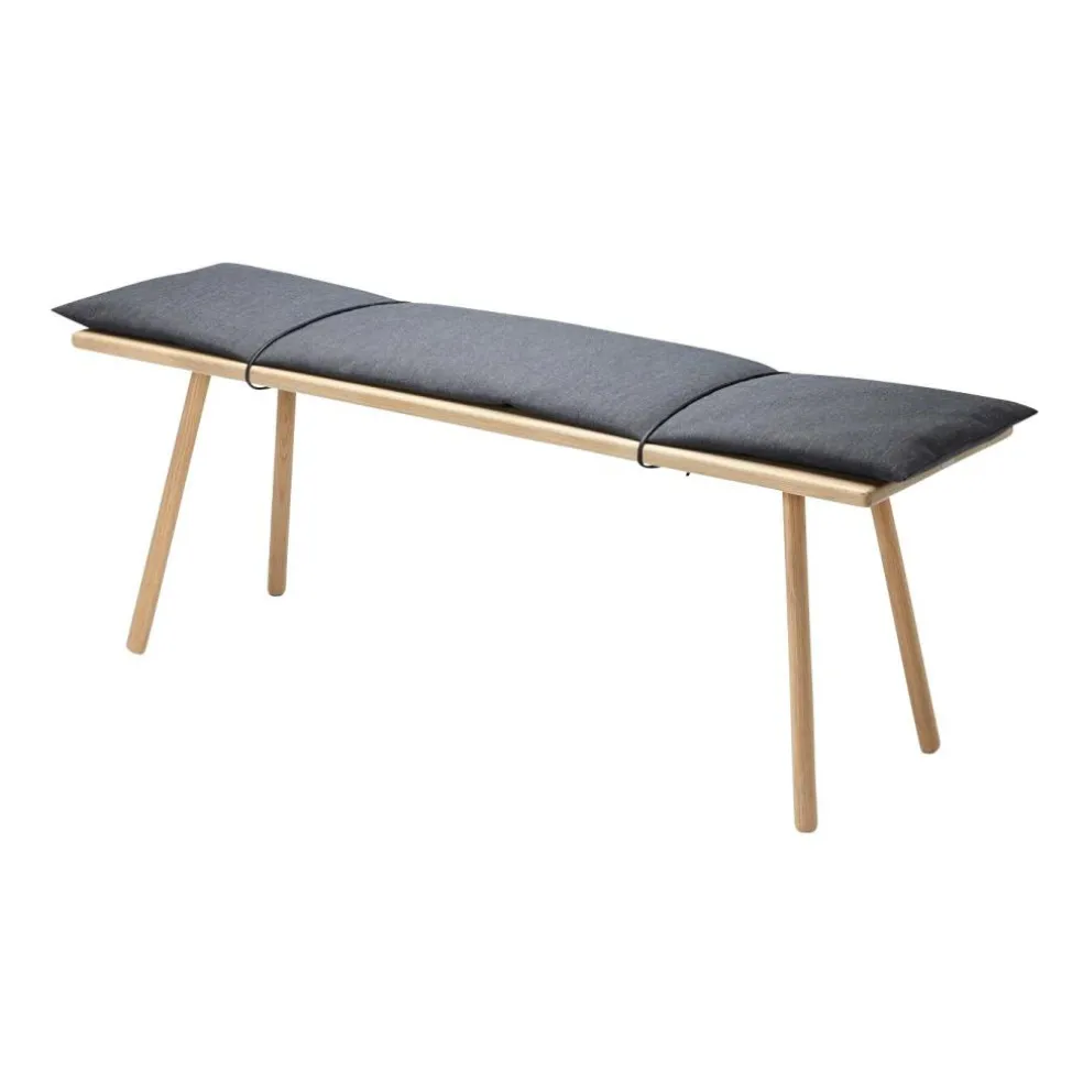 Die Skagerak Georg Bank/Holzbank von Skagerak besteht aus massiver, 100% FSC®-zertifizierter Eiche und misst 124x38cm als Sitzfläche. Die Sitzhöhe beträgt 45cm. Im Lieferumfang ist das dunkelgraue Sitzkissen inkludiert, das von zwei schlichten Lederriemen gehalten wird.