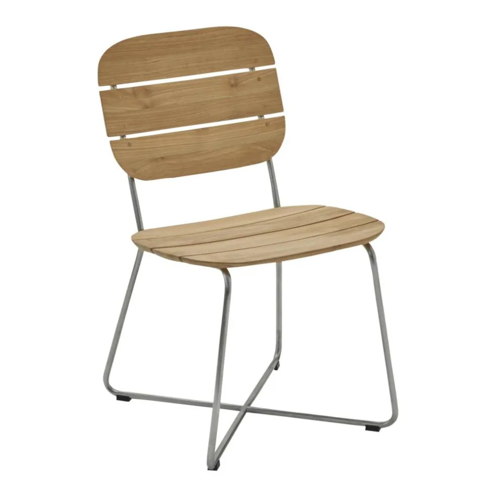 Der Stil des Lilium Gartenstuhl ist eine harmonische Mischung aus rustikalen Elementen und einer eleganten Leichtigkeit. Sitz und Rückenlehne wurden aus tropischem Teakholz gefertigt, das aus kontrolliertem Anbau stammt. Das Holz ist resistent gegen Witterungseinflüsse, sodass der Gartenstuhl auch bei schlechtem Wetter im Freien verbleiben kann. Die Oberflächen wurden nicht behandelt und können im Verlauf des Jahres eine silbergraue Farbe annehmen. Möchten Sie den ursprünglichen Farbton erhalten, können Sie das Holz gelegentlich mit einem geeigneten Öl behandeln. Das Gestell besteht aus korrosionsbeständigem Edelstahl, der gegebenenfalls mit einem feuchten Tuch gereinigt werden kann.