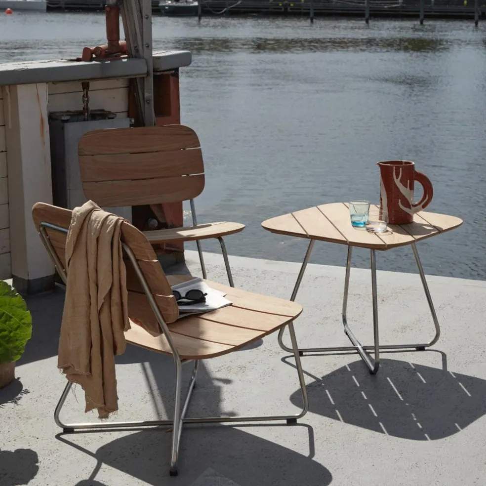 Der Lilium Lounge Gartenstuhl wurde von der BIG Bjarke Ingels Group für die Marke Skagerak entworfen. Der Gartenstuhl überzeugt durch sein modernes Erscheinungsbild und die hochwertige Materialauswahl aus Holz und Stahl. Die weichen Formen mit den abgerundeten Hölzern und den eleganten Biegeradien des Gestells fließen ineinander über und bieten dem Betrachter ein angenehmes Erscheinungsbild.
