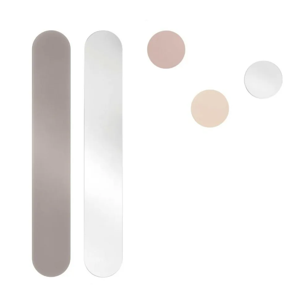 Mit Abmessungen von 24 x 22,4 x 156 cm eignet sich diese schmal gehaltene Garderobe perfekt zur Anbringung im Eingangsbereich von Wohnung oder Haus. Sie ist erhältlich in zwei unterschiedlichen Varianten, zum einen mit einer verspiegelten Front, zum anderen in der Farbe Rosenholz. Zur Herstellung wurden verchromter Stahl, MDF und Spiegelglas genutzt.
