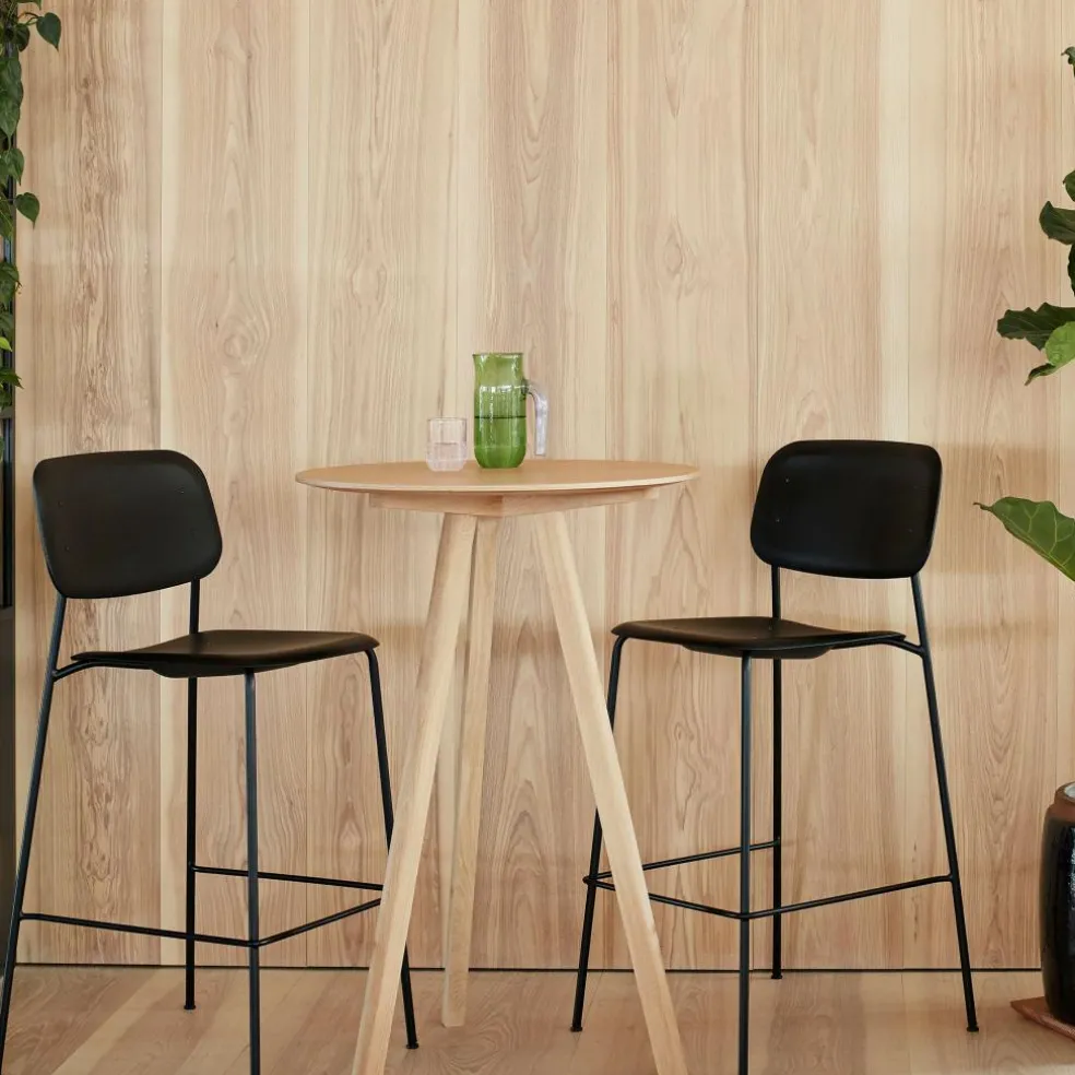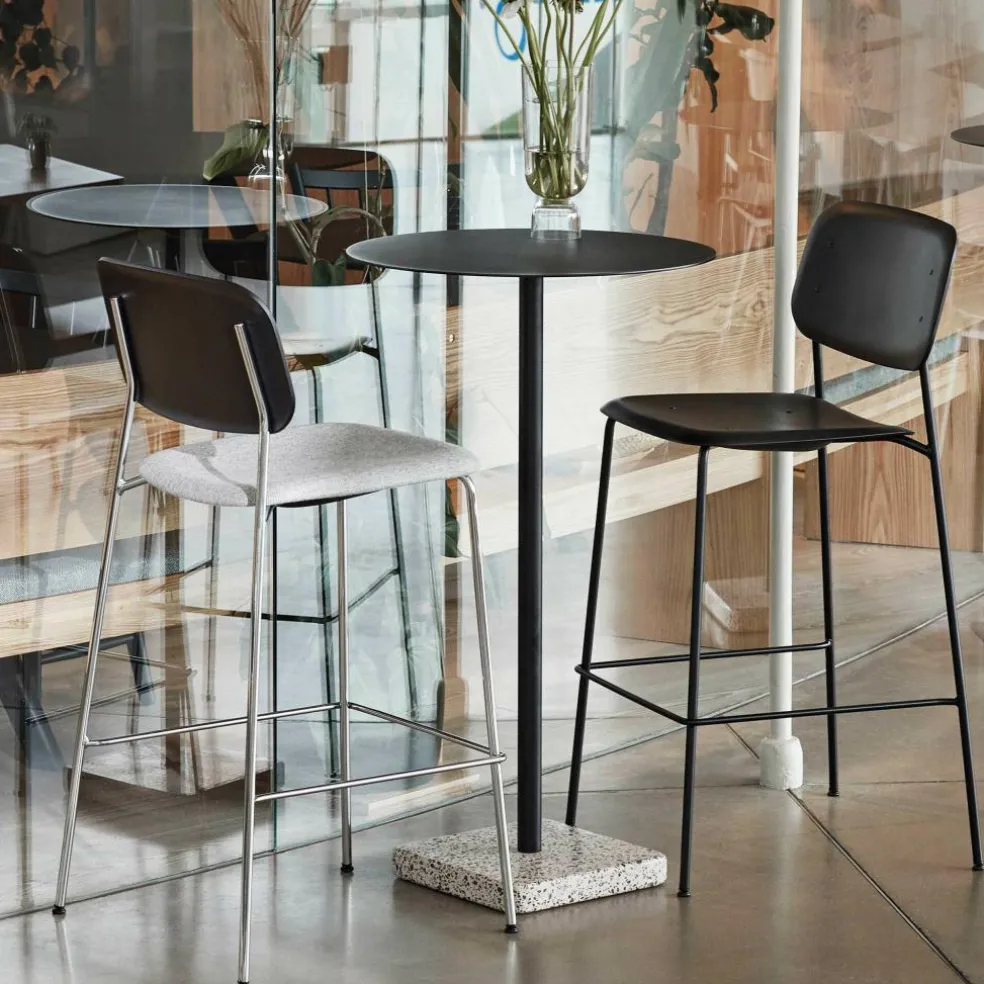 Der Soft Edge 95 Barhocker hoch Gestell Stahl schwarz wurde von Berlin Iskos für die Marke HAY entworfen. Ganz wie es dem Motto von Boris Berlin und Aleksej Iskos entspricht, die das Studio Berlin Iskos gründeten, verwenden sie für den schlichten Barhocker neue Technologien und innovative Materialien.