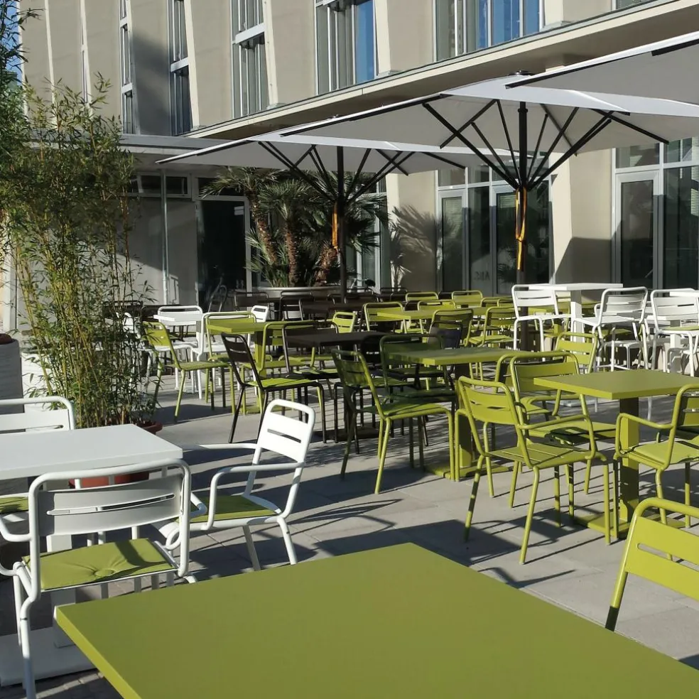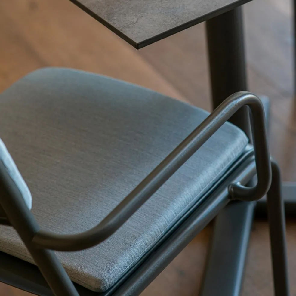 Beim Star Gartenarmlehnstuhl handelt es sich um einen wahren Klassiker: Er ist aus pulverbeschichtetem Stahl gefertigt und wirkt dank seiner abgerundeten Ecken harmonisch. Markenzeichen sind die beiden ausgestellten hinteren Stuhlbeine und die in einem eleganten Rundbogen geschwungenen Armlehnen. In Rückenlehne und Sitzfläche sind Schlitze eingearbeitet: Sie sorgen dafür, dass Regenwasser rasch abfließen kann. Somit ist das Möbelstück nach einem Regenguss rasch wieder einsatzbereit. Egal ob auf der Terrasse, auf dem Balkon oder im Garten, der Star Gartenarmlehnstuhl ist eine bequeme und praktische Sitzgelegenheit für jeden Anlass. Gerne wird er auch von Restaurants und Kaffeehäusern mit einem Freibereich verwendet.