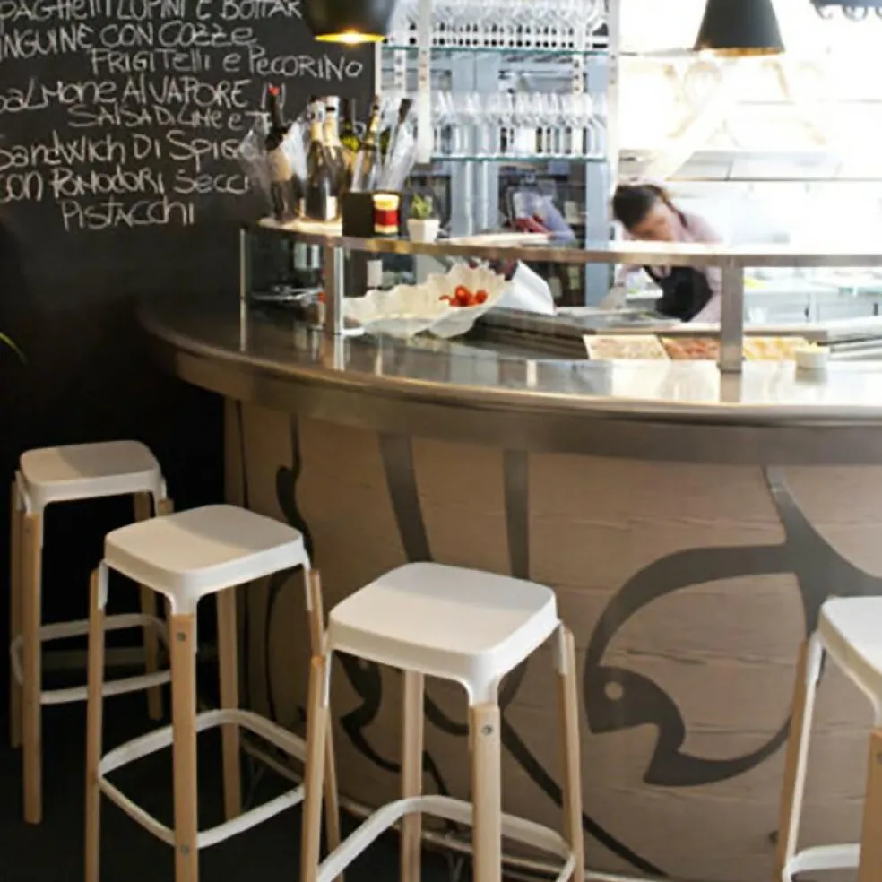 Der Barhocker Steelwood 78 wurde von den Designern Erwan und Ronan Bouroullec für den italienischen Hersteller Magis entworfen und zeichnet sich durch seine Kombination von Holz und Stahlblech aus.