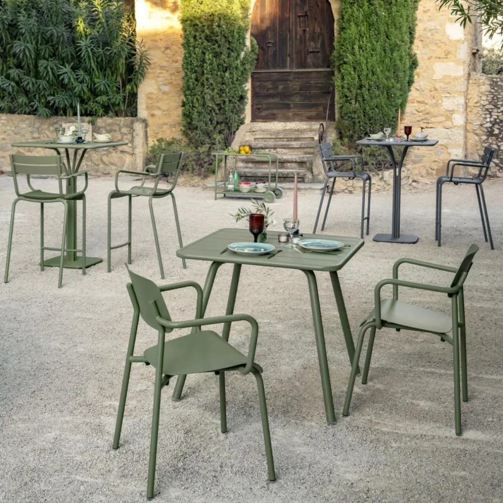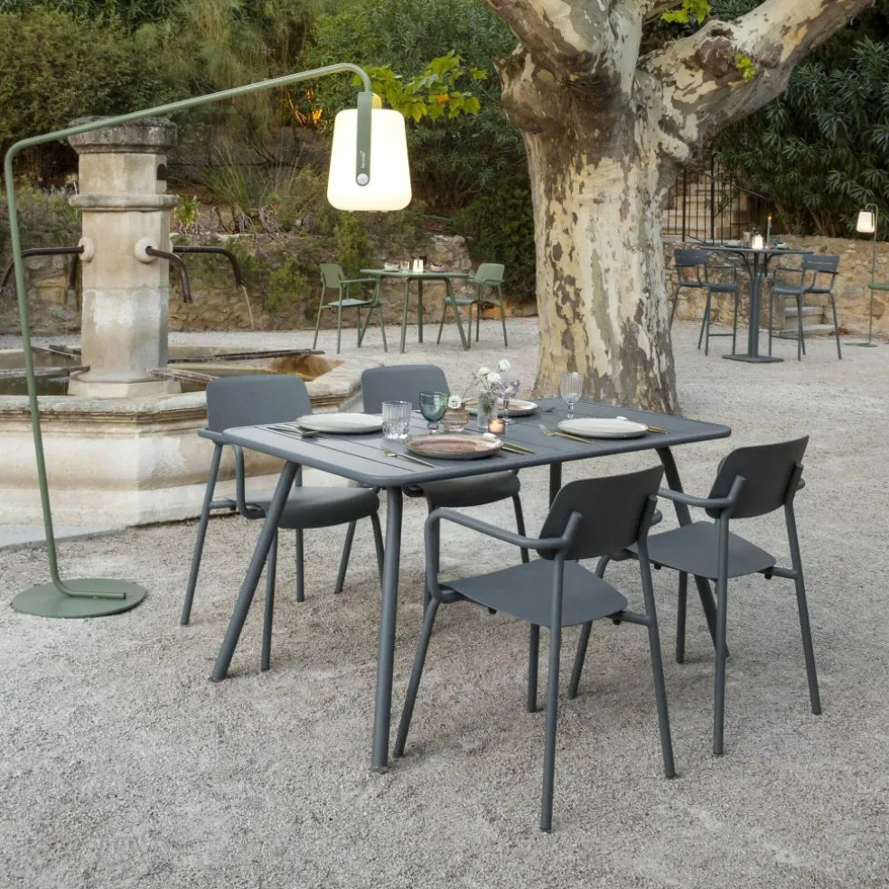 Der Studie Gartenarmlehnstuhl wurde von Tristan Lohner für die Marke Fermob entworfen. Er ist Teil einer Serie von modernen Möbeln für den Outdoorbereich. Ihre Bezeichnung verdanken die Studio-Modelle der Form, die sich an den klassischen Studierstühlen aus der Schulzeit anlehnt.