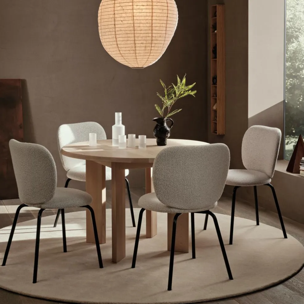 Der Tarn Esstisch 115cm wurde für die Marke Ferm Living entworfen. Er ist Teil einer Kollektion von außergewöhnlichen Tischen, die mit unregelmäßig geformten Platten auffallen. Die organisch gebogenen Konturenschaffen eine natürliche Atmosphäre und versprühen einen individuellen Touch.