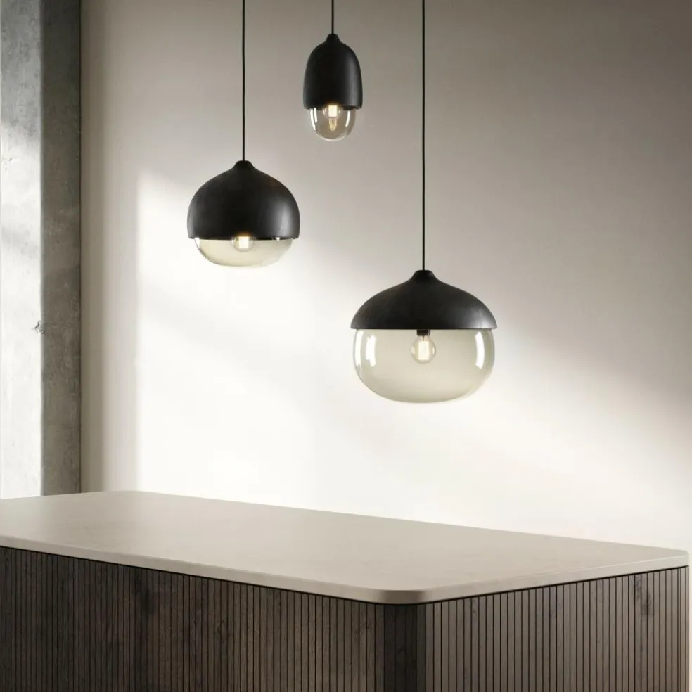 Die Terho Pendelleuchte S wurde von Maija Puoskari für die Marke Mater entworfen. Die Innenarchitektin aus Helsinki betreibt ihr eigenes Designstudio. Ihre Entwürfe gewannen bereits mehrere Preise und zeichnen sich durch eine starke Vorliebe für Funktionalität und reine Formen aus. Als Inspiration nutzt die Finnin die wilde Natur ihrer Heimat. Namen- und Formgeber der Terho Pendelleuchte S ist die Eichel, die häufig in den weiten Wäldern Finnlands zu finden ist. Die natürliche Schönheit des Holzes verschmilzt bei dieser Leuchte mit der raffiniert feinen Struktur des mundgeblasenen Glases und verleiht dem Objekt einen atemberaubenden Charme. Es wirkt modern und zeitlos.