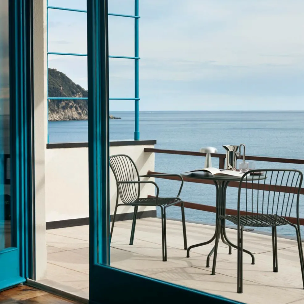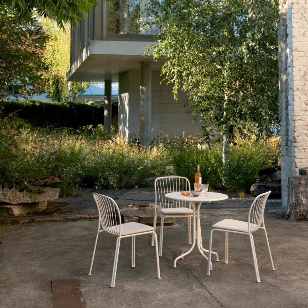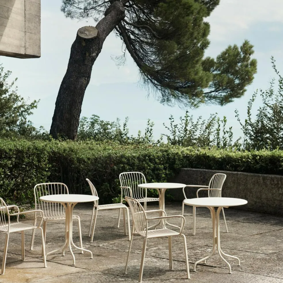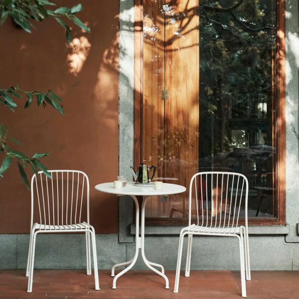 Der Thorvald SC94 Gartenstuhl wurde von Space Copenhagen für die Marke &Tradition entworfen. Er ist Teil einer eleganten Outdoorkollektion, deren Designs von den Arbeiten des dänischen Bildhauers Bertel Thorvaldsen inspiriert sind.