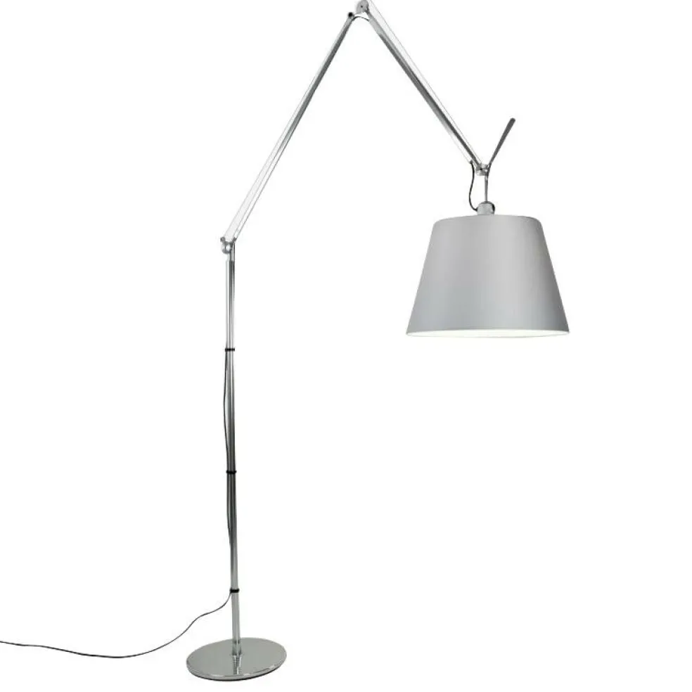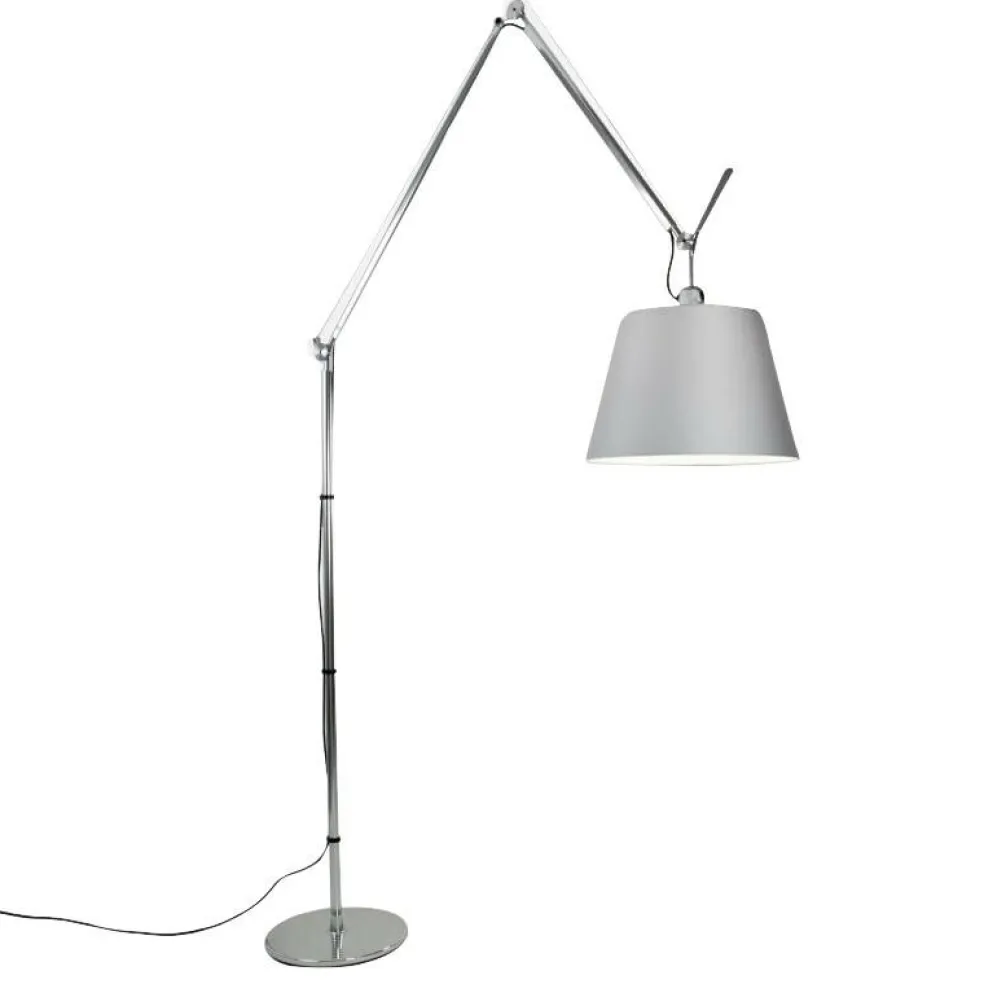 Seit 1987 begeistern die Leuchten der Tolomeo Serie durch ihre hohe Funktionalität und ihr einzigartig ästhetisches Design. Die Stehleuchte Mega Terra, für den Hersteller Artemide kreiert, hat einen integrierten Dimmer, der für die perfekte Ausleuchtung oder sattes, gemütliches Licht in jedem Raum sorgt. Ob am Esstisch, in der Couch-Ecke oder freistehend: Diese Stehlampe beeindruckt durch ihr angenehmes, regulierbares Licht und ist vielseitig anwendbar. Sie kann ganz senkrecht ausgerichtet werden und zur Decke strahlen, sie kann wie eine Laterne über dem Tisch schweben oder weiter entfernte Bereiche ausleuchten, mithilfe ihrer langen, verstellbaren Arme. Trotz ihrer Länge von 327 cm wirkt sie leicht und filigran.