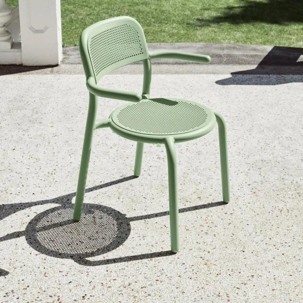 Mit dem Toní Gartenarmlehnstuhl hat der Designer Erik Stehmann ein weiteres komfortables und attraktives Produkt für die Marke Fatboy erschaffen. Die bekannte Toní-Kollektion umfasst neben Stühlen ohne Armlehne die Tische Bistreau und Tablo sowie bequeme Sitzkissen.