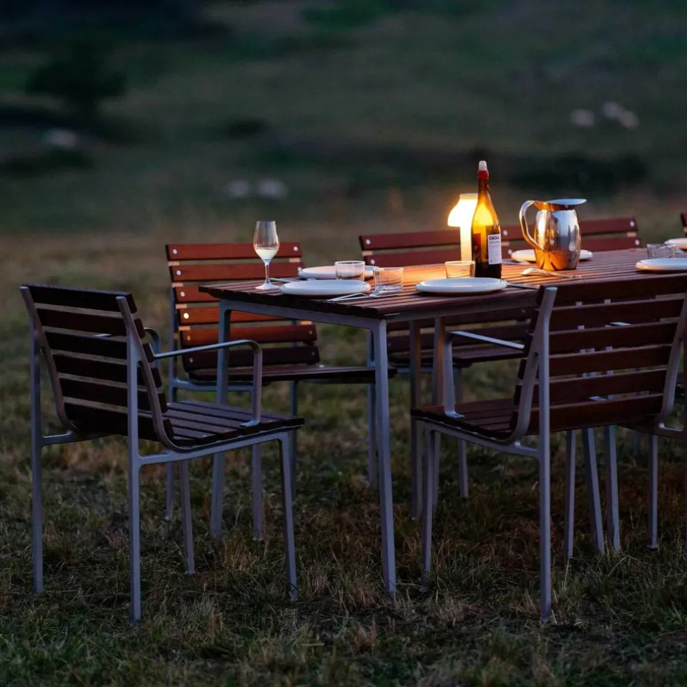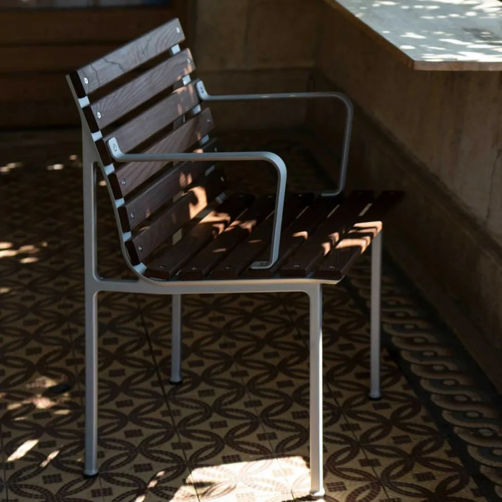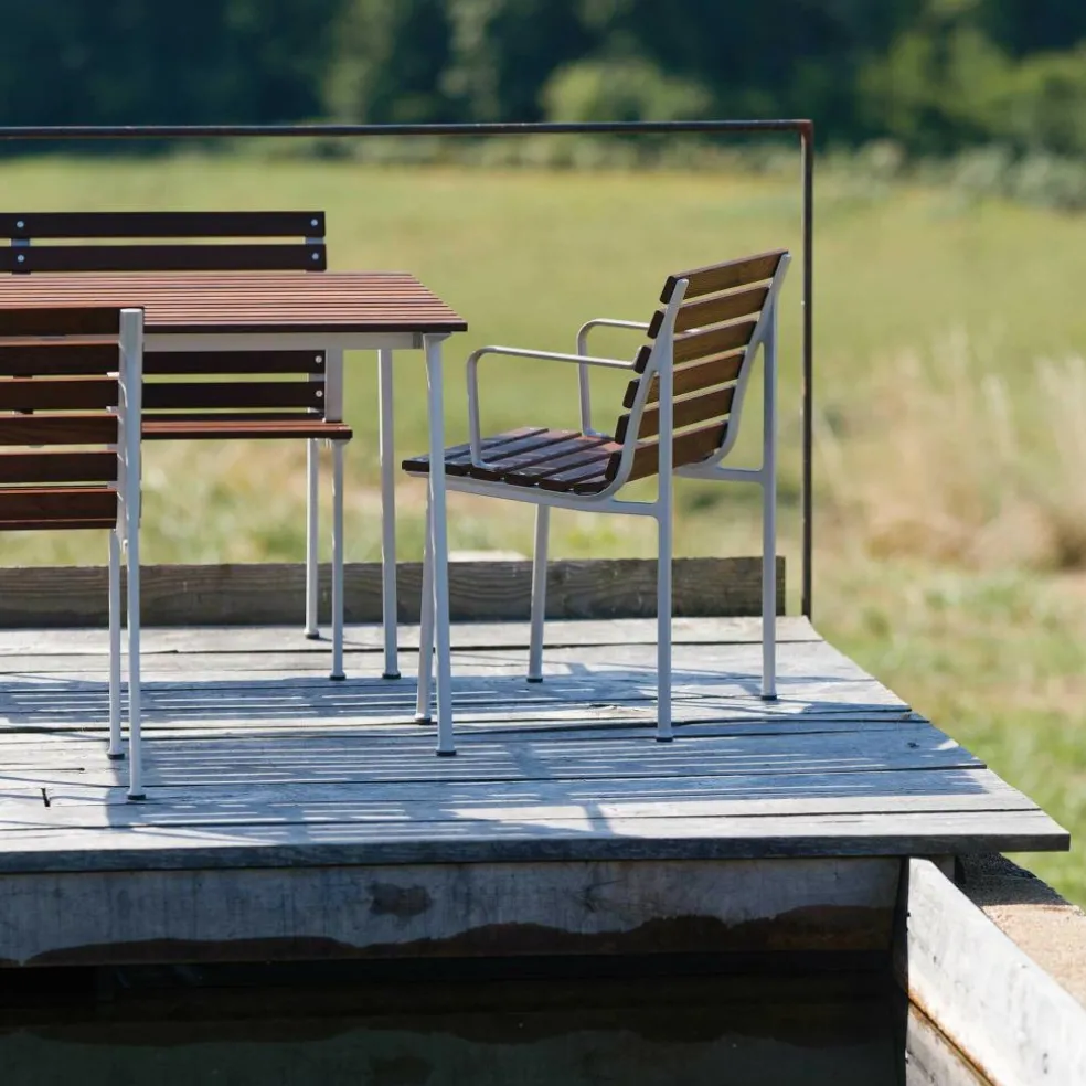 Der Traverse Gartenarmlehnstuhl lässt sich ideal mit den anderen Möbeln der Kollektion von HAY kombinieren – darunter Esstische, Bänke, Lounge-Sessel und Hocker. Er steht für eine Gestaltung, die bewusst auf Dauer angelegt ist – in ihrer Materialwahl ebenso wie in ihrem Ausdruck. Klar, kraftvoll, kompromisslos – ein Stuhl, der Haltung zeigt.