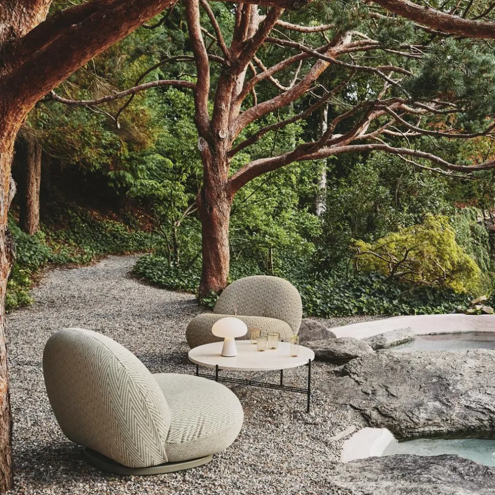 Da sich der TS Outdoor Beistelltisch Ø80cm mit jedem Stil kombinieren lässt, ist er vielseitig einsetzbar. Er vervollständigt die moderne Gartengarnitur und passt gut zu Stühlen aus Metall. Der TS Outdoor Beistelltisch Ø80cm hat ein robustes Gestell aus pulverbeschichtetem Stahl. Es besteht aus vier Füßen, die aus Stahlrohr bestehen. Markant sind die drei dünneren Stäbe, die in einer Diagonale die Beine verbinden. Sie schneiden sich genau im Mittelpunkt unter der Tischplatte. Die runde Tischplatte ist aus Travertin gefertigt. Dabei handelt es sich um einen Kalkstein, der aus der Region um Tivoli stammt. Die Besonderheit des Materials sind die natürlichen Poren und Löcher. Sie machen den Naturstein unverwechselbar. Daher ist jeder TS Outdoor Beistelltisch Ø80cm ein Einzelstück.