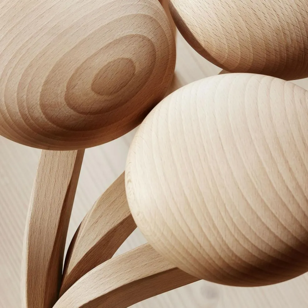 Jørn Utzon, als Dänemarks wohl bekanntester Architekt und weltberühmt für seinen Entwurf des markanten Opernhauses in Sydney, hat mit dem nach ihm benannten Utzon Hocker eine Ikone skandinavischen Designs geschaffen. Das dekorative Sitzmöbel für den Innenbereich ist Ausdruck von Utzons Fähigkeit, komplexe Formen in praktisch nutzbare Gegenstände zu übersetzen. Charakteristisch für den Hocker ist seine Sitzfläche aus sieben runden, kugelförmigen Elementen, die an Schiffspoller erinnern und aus zwei massiven Holzstücken laminiert sind. Zierende, ebenfalls maritim anmutende Messingringe verhindern, dass das Holz reißt. Zugleich sind sie Ausdruck von Detailverliebtheit im Design. Die geölten Massivholzknöpfe sitzen auf einem Untergestell, dessen drei dampfgebogenen Beine aus jeweils 17 Schichten mit 2mm starkem Furnierholz gefertigt und in Form eines Dreiecks angeordnet sind. Alle Lagen sind mit der gleichen Maserung versehen, um ein einheitliches Aussehen zu gewährleisten.