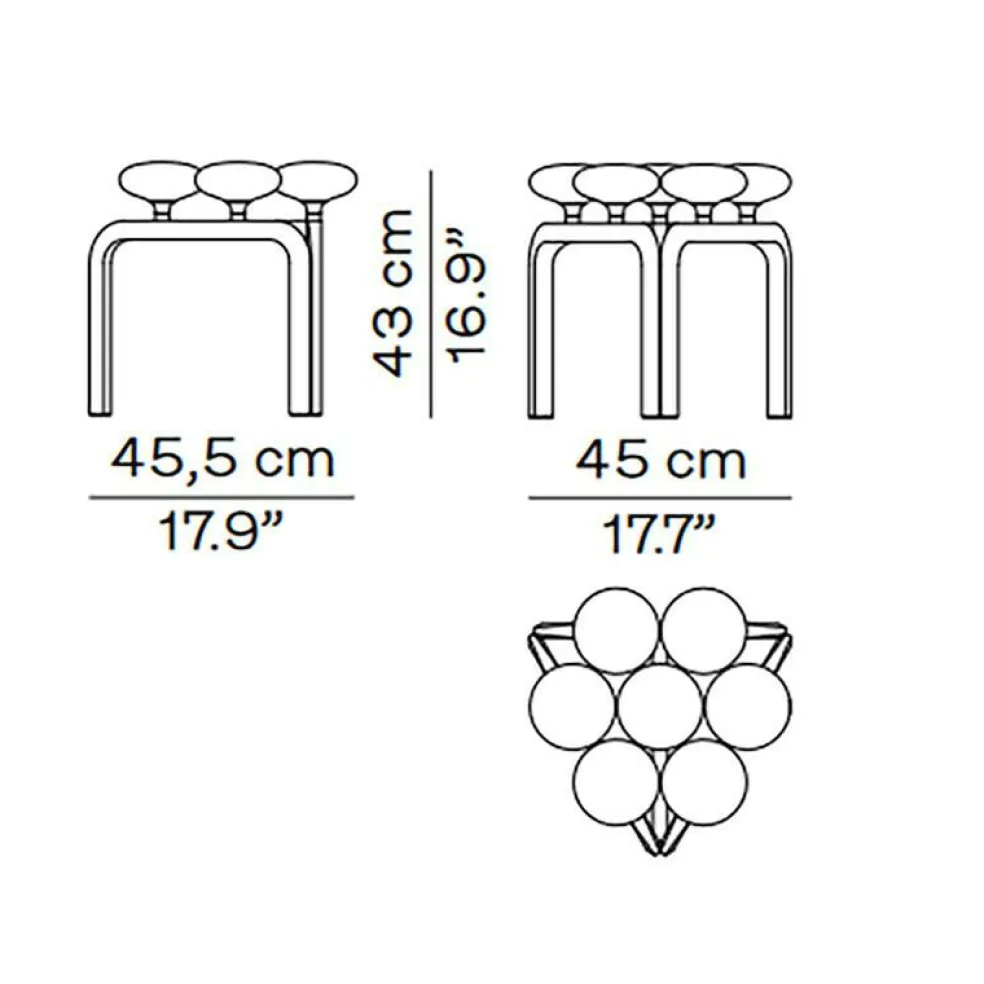 Der Utzon Hocker von Fritz Hansen wird montiert geliefert und hat ein Gewicht von 11kg. Bei einer Höhe von 43cm ist er 45cm breit und 45,5cm lang.