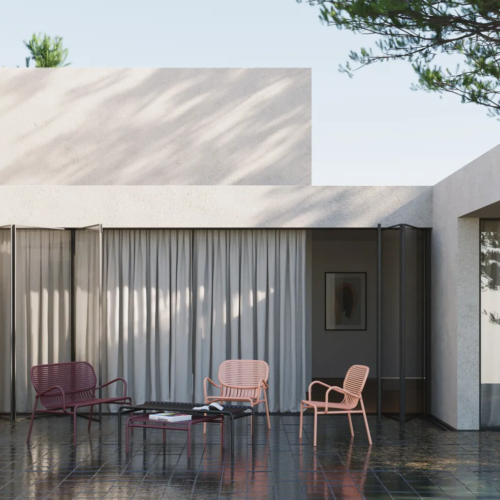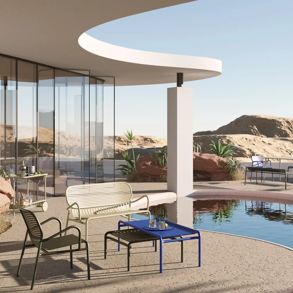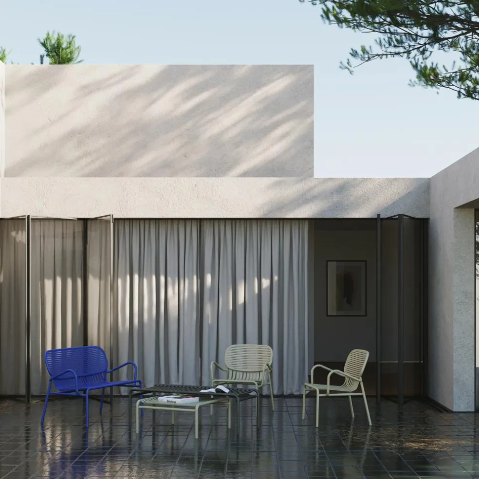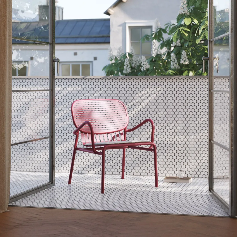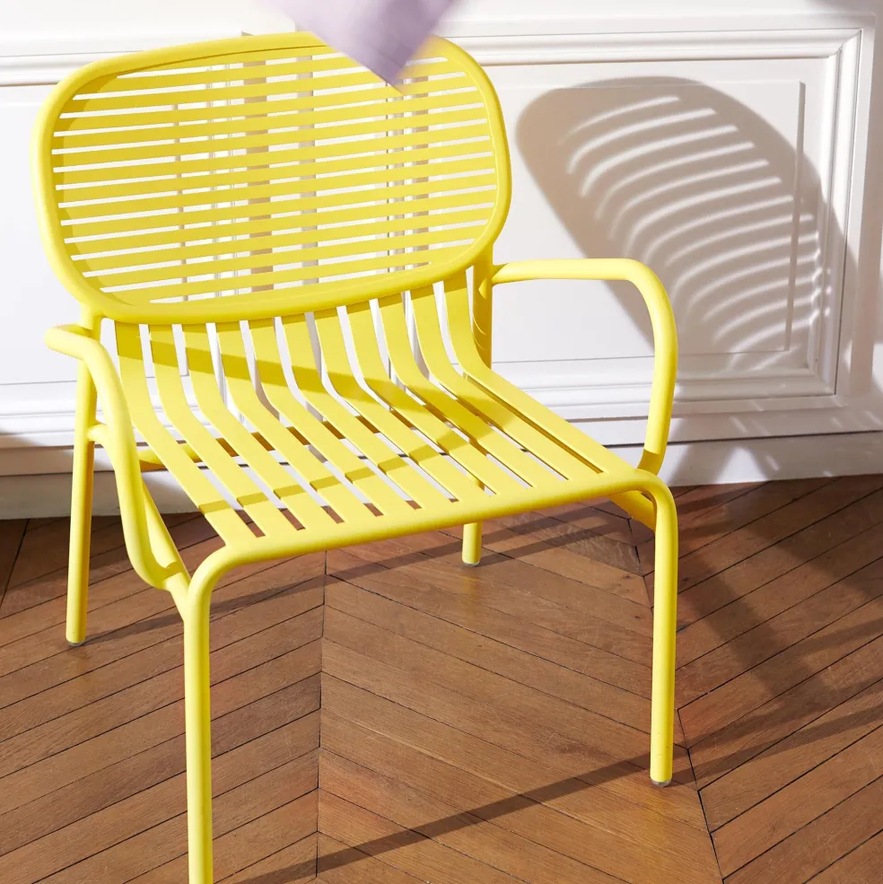 Der entspannte und lässige Week-End Gartenarmlehnstuhl wurde von Studio BrichetZiegler für den Hersteller Petite Friture entworfen. Mit seinem sommerlichen Flair erinnert er an sorglose Nachmittage im Urlaub und bringt Ihnen so auch dieses unbeschwerte Feeling nach Hause.