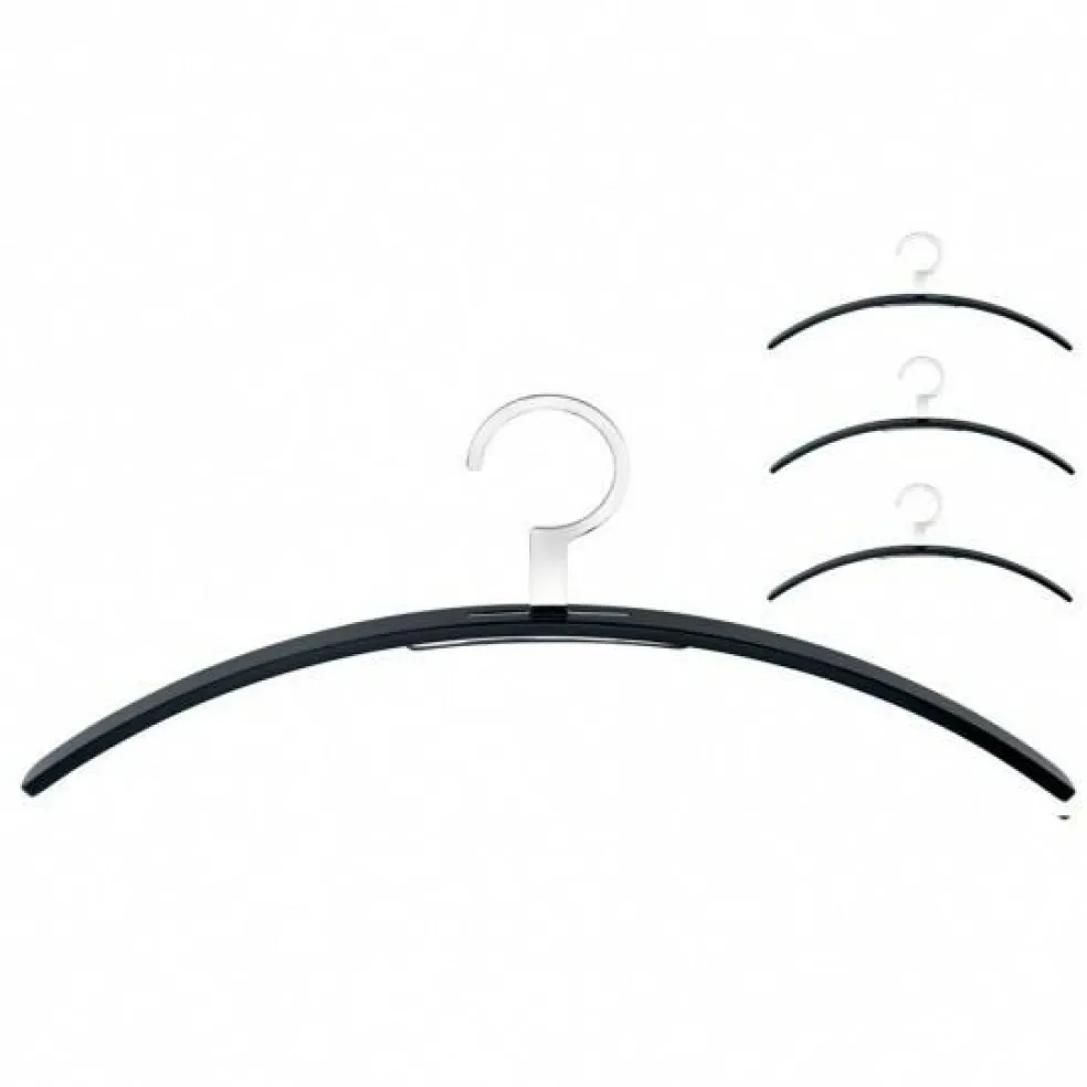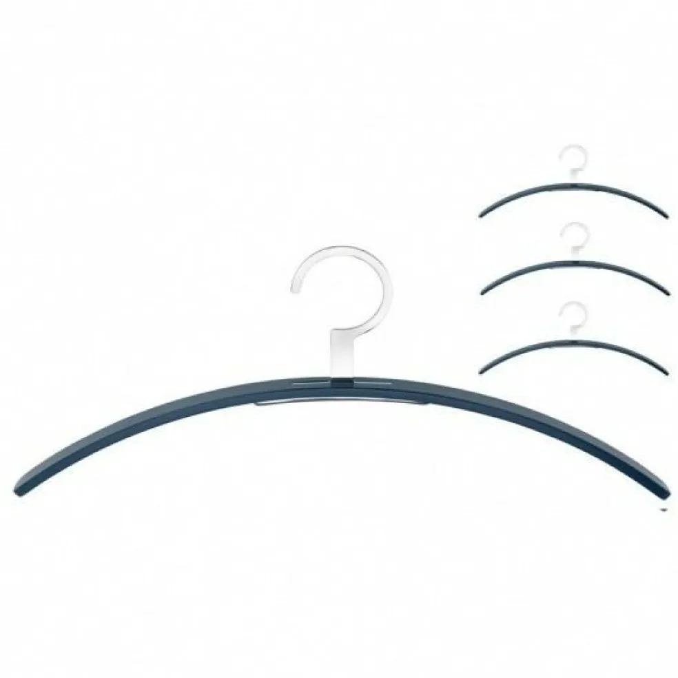 Die Kurven der Bügel zeigen, dass Molldesign bei diesem Entwurf den Anspruch verwirklicht hat, Wohlgefühl und Behaglichkeit zu verbreiten. Das 0130 Kleiderbügel Set ist in Schwarz, Grauweiß, Asphaltgrau, Stahlblau und Rosenholz erhältlich.