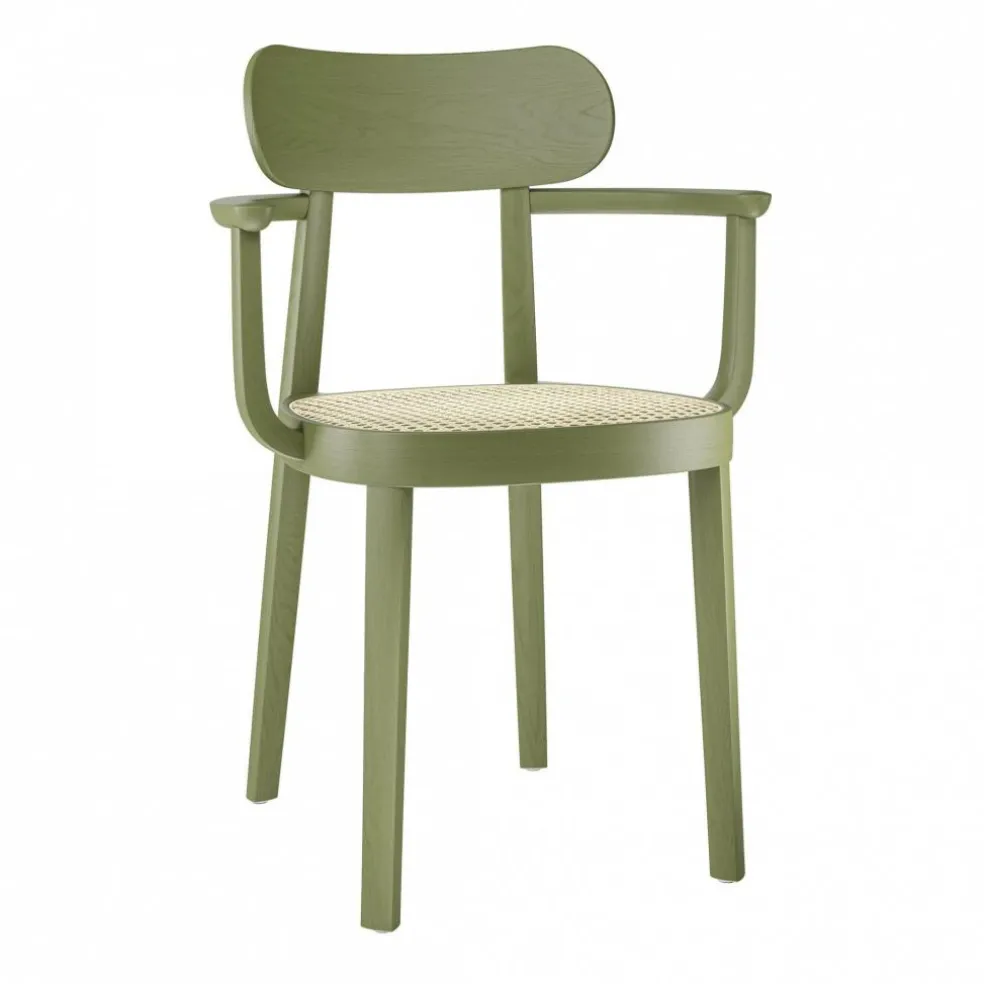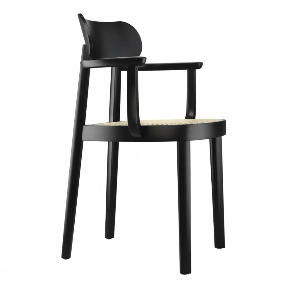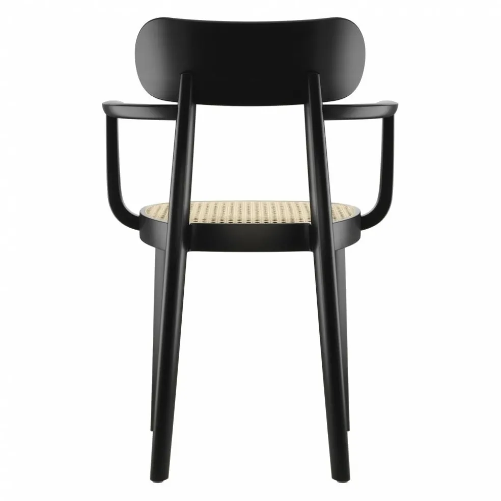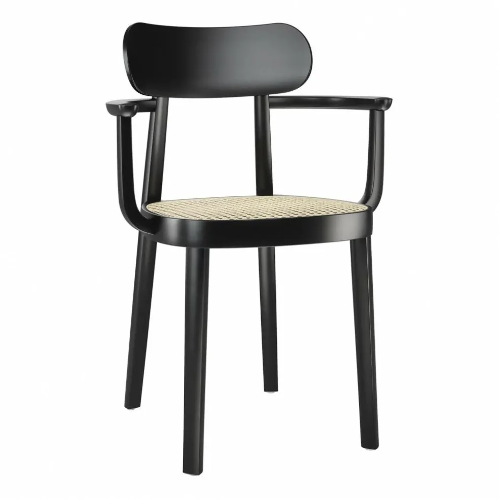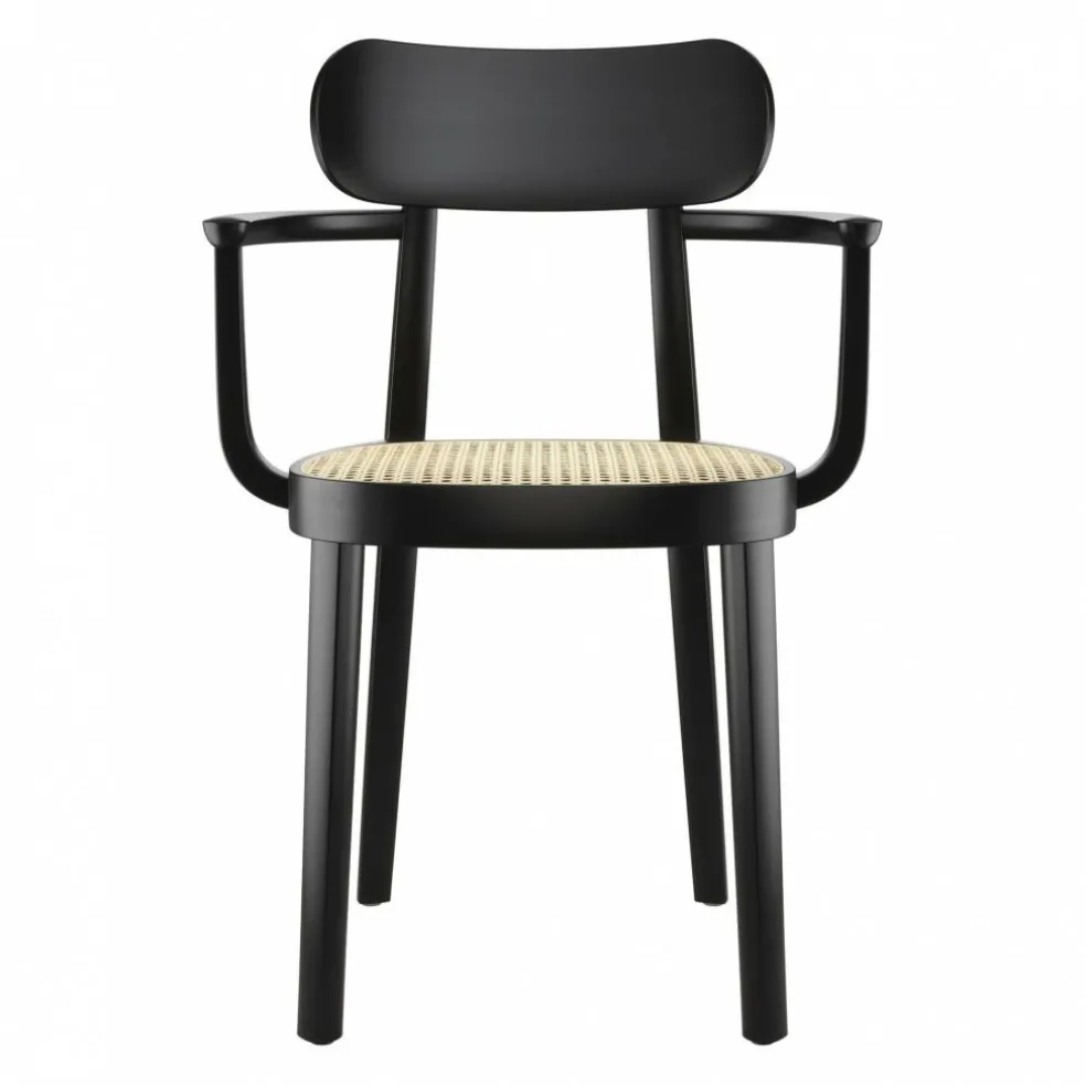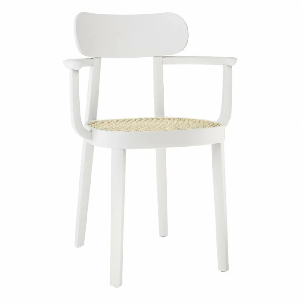 Der 118 F Armlehnstuhl mit Rohrgeflecht wurde von Sebastian Herkner für die Marke Thonet entworfen. Bevor der deutsche Designer die 118er-Serie entwarf, befasste er sich intensiv mit den beliebten Sitzgelegenheiten des 20. Jahrhunderts. Er setzte sich mit denselben Fragen auseinander, die auch während der Frankfurter Ausstellung ‚Der Stuhl‘ im Jahr 1929 im Vordergrund standen: Damals war man auf der Suche nach einer Sitzgelegenheit, die den damaligen Werten und dem Lebensstil der Menschen entsprach.