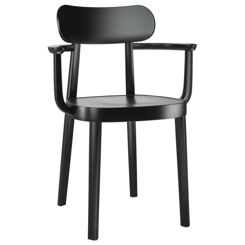 Der 118 MF Armlehnstuhl mit Muldensitz wurde von Sebastian Herkner für die Marke Thonet entworfen. Der deutsche Designer stellte den schlichten Stuhl im Jahr 2018 vor.