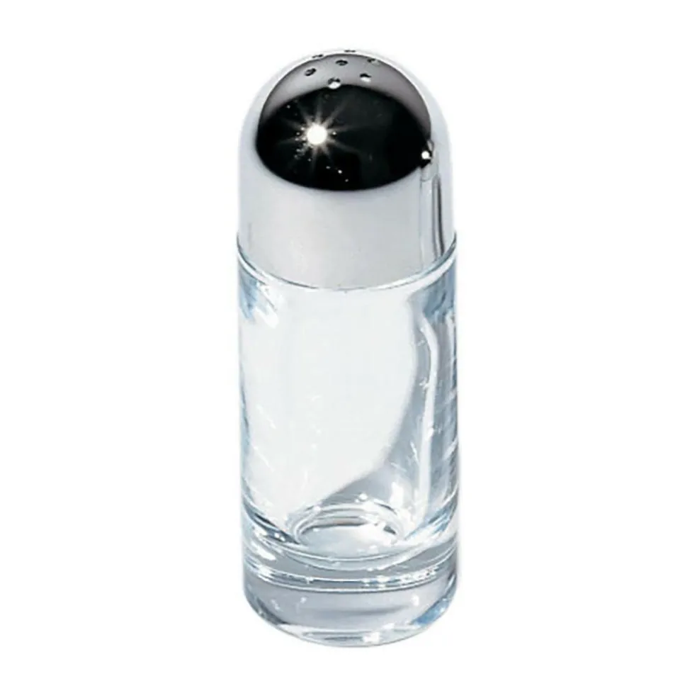 Der Pfefferstreuer 5076 ist ein klassisches und zugleich unerlässliches Tafelaccessoire, der mit seinem schlichten eleganten Design auf Ihrem Esstisch eine gute Figur macht. Den Pfefferstreuer 5076 von Alessi können Sie wunderschön mit dem Salzstreuer 5075 und dem Zahnstocherbehälter 5078 der gleichen Kollektion kombinieren, siehe unsere „Kollektion“. Auch im Menage Set 5079 finden Sie den Pfefferstreuer. Der Pfefferstreuer von Alessi ist aus Kristallglas und Edelstahl hergestellt. Sie füllen einfach Pfeffer ein und können Ihre Speisen ganz nach Geschmack würzen.