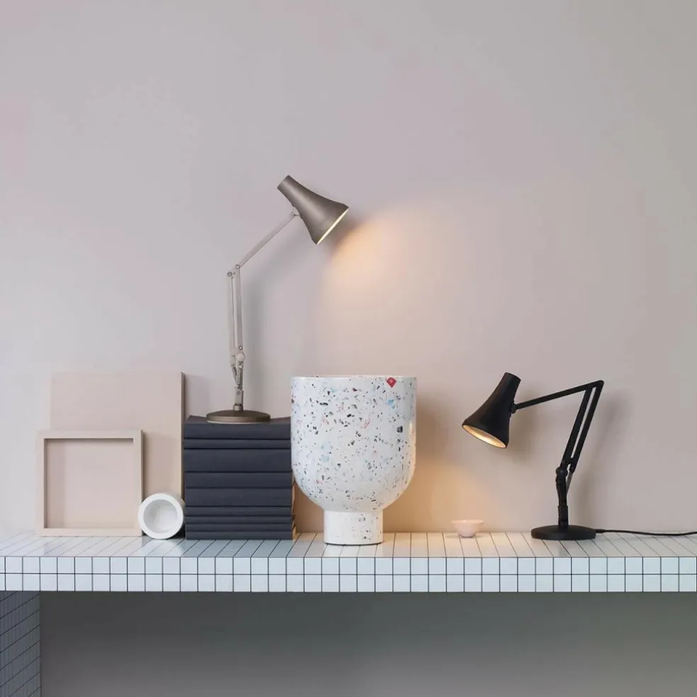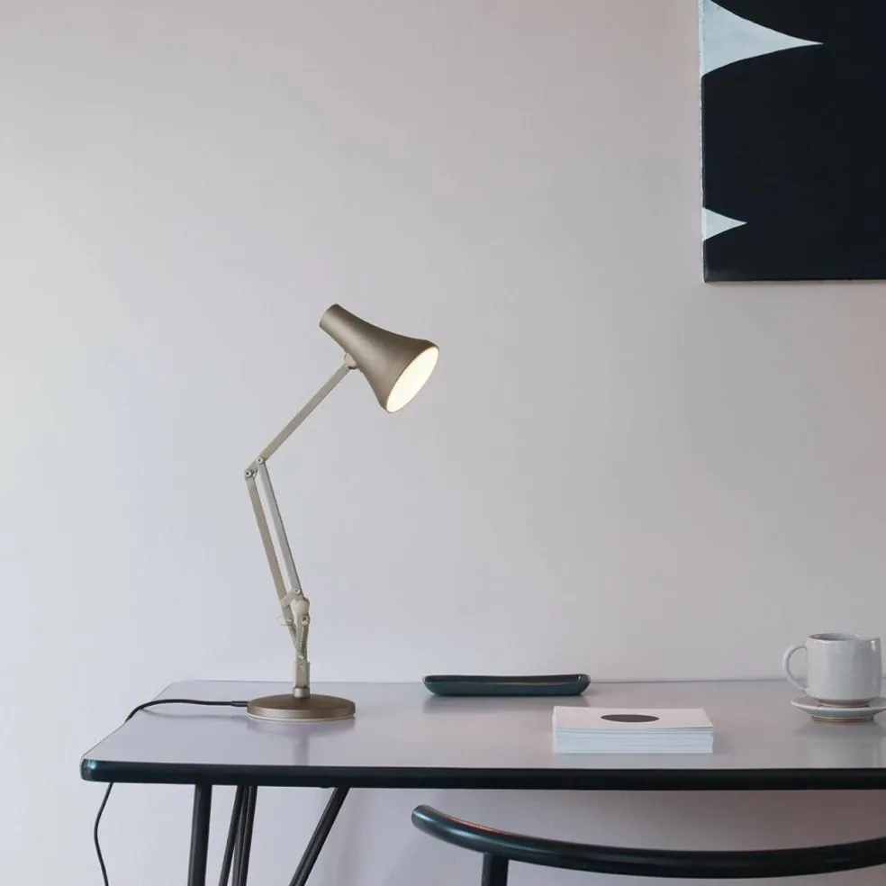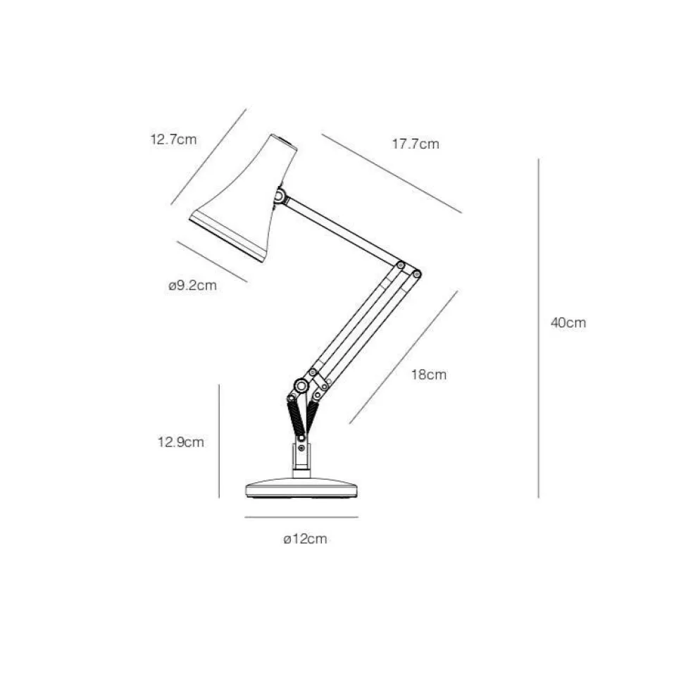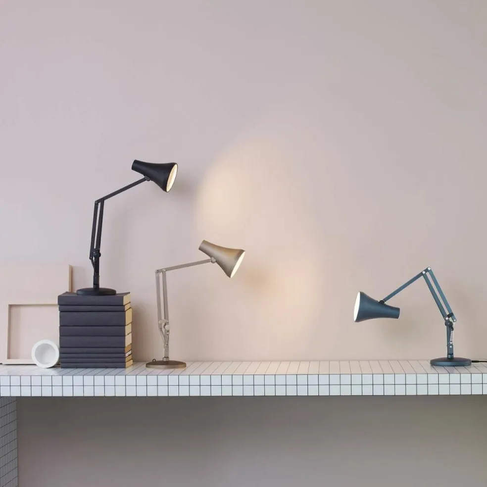 Die 90 Mini Mini LED Tischleuchte wurde für die Marke Anglepoise entworfen. Sie ist eine Variation des Klassikers von George Carwandine, der die ersten Modelle in den 1930er-Jahren entwarf. Ursprünglich war Carwandine von Beruf Profi für Stoßdämpfersysteme, und sein Fachwissen inspirierte ihn zum Entwurf der Anglepoise-Leuchten. Mithilfe mehrerer Federn ahmte der Designer den Arm eines Menschen nach. Es ist also nachvollziehbar, dass die 90 Mini Mini LED Tischleuchte als wahres Wunderwerk der Technik gilt. Da die Marke ursprünglich Leuchtkörper für die Industrie herstellte, punkten die Modelle mit hervorragender Funktionalität. Als Kleinversion der in den 1970er-Jahren so beliebten 90 Tischleuchte ist die 90 Mini Mini LED Tischleuchte eine funktionale und dimmbare Lichtquelle für jeden Arbeitsplatz. Sei es im Büro oder im Home Office, das Modell ist durch seine spezielle Konstruktion individuell anpassbar. Durch die flexiblen Gelenke im Gestell lässt sich der Schirm mit dem Durchmesser von 9,2cm in jede beliebige Position bringen. Ausgestattet ist die 90 Mini Mini LED Tischleuchte mit einer leistungsstarken LED-Leuchte mit einer Lebensdauer von rund 20.000 Betriebsstunden. Praktisch ist auch der USB-Anschluss, der PC oder Laptop mit der Leuchte verbindet und somit für eine vom Stromkreis unabhängige Beleuchtung sorgt.