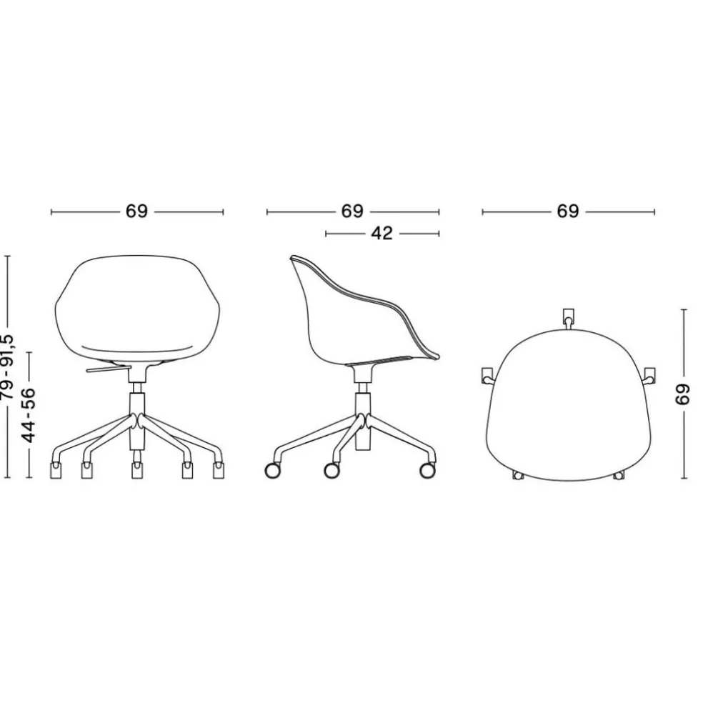 Der About a Chair AAC 253 Bürodrehstuhl Gestell schwarz wiegt 9,6 kg. Die Höhe beträgt je nach Einstellung 79 bis 91,5 cm und die Sitzhöhe 44 bis 56 cm. Der Stuhl ist 69 cm breit und ebenso tief.