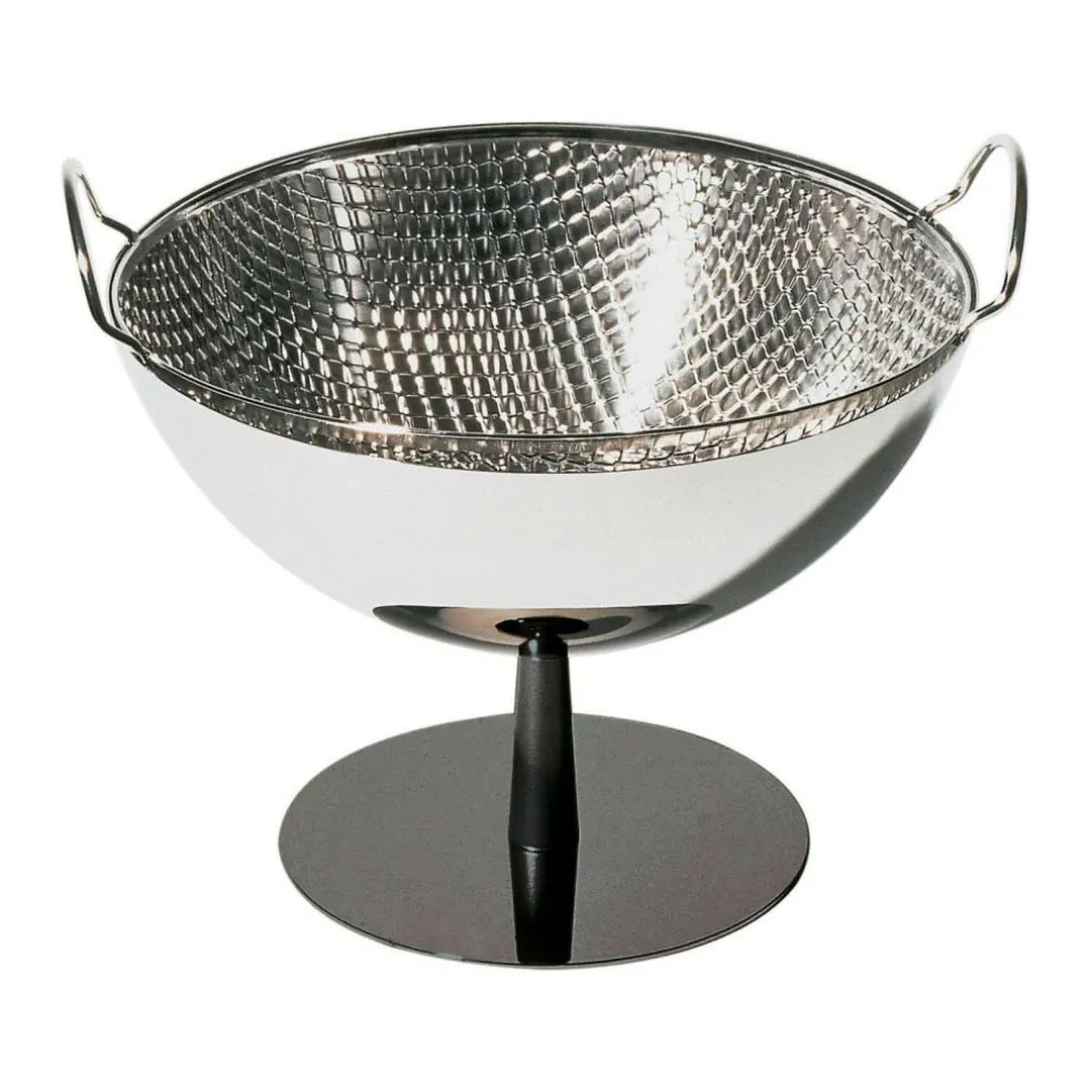Sie zeichnet sich durch ihr elegantes Design aus poliertem Edelstahl aus, der die Früchte nicht mehr nur Lebensmittel, sondern raffiniert in Szene gesetzte Kunstwerke sein lässt. Hinzu kommt bei der Obstschale AC04 von Achille Castiglioni eine eigenwillige Musterung, die das Licht auf dynamische Weise reflektiert und das gelungene Gesamtbild gewitzt abrundet. Die blassgoldene Verzierung lässt die Obstschale AC04 zudem in einem Hauch von Luxus erstrahlen. Den bodenständigen Kontrast dazu stellt der solide Standfuß in Anthrazit dar.