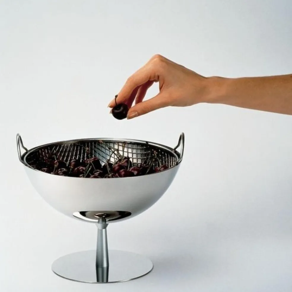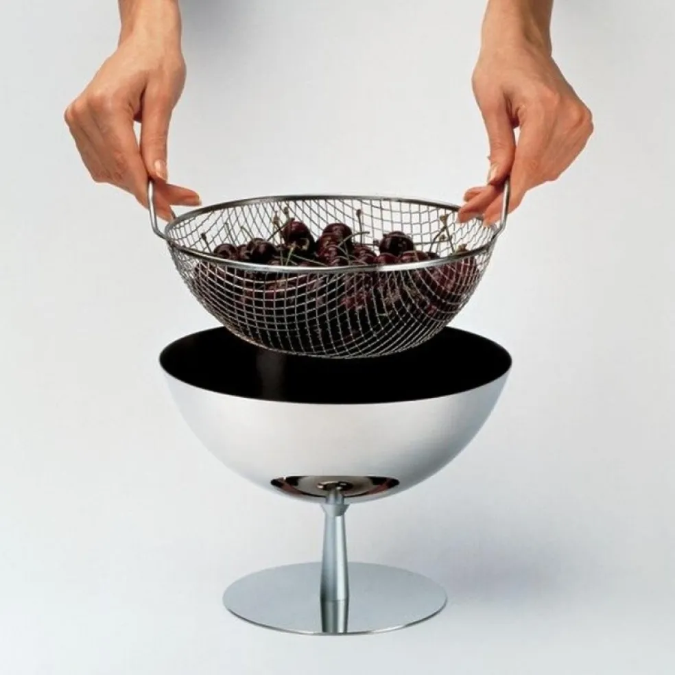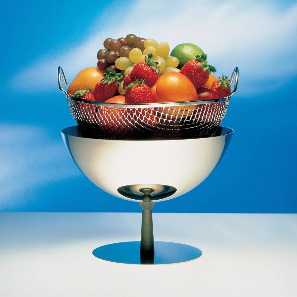 Die futuristisch anmutende Obstschale AC04 wurde von Designer Achille Castiglioni für das italienische Label Alessi entworfen.