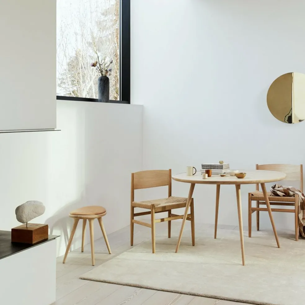 Im typisch nordischen Stil präsentiert sich der Accent Esstisch. Bewusst verzichten die Designer auf unnötige Ornamente und beschränken sich bei dem Entwurf auf das Wesentliche. Trotzdem ist der Accent Esstisch unverwechselbar. Dafür sorgen die vier schräg gestellten Beine. Sie verleihen dem Modell sicheren Stand. Da sich die Beine nach unten hin verjüngen, wirkt der Accent Esstisch dynamisch und leicht. Der formschöne Tisch wird aus FSC®-zertifiziertem Eichenholz gefertigt. Der Rohstoff stammt aus nachhaltiger Forstwirtschaft. Erhältlich ist der Tisch in verschiedenen Farben und mit gebeizter oder matt lackierter Oberfläche. Der Accent Esstisch ist im Ess- oder Wohnzimmer ein beliebter Treffpunkt für Familien. Er kann jedoch auch in einem kleinen Konferenzraum oder in einem Restaurant verwendet werden.
