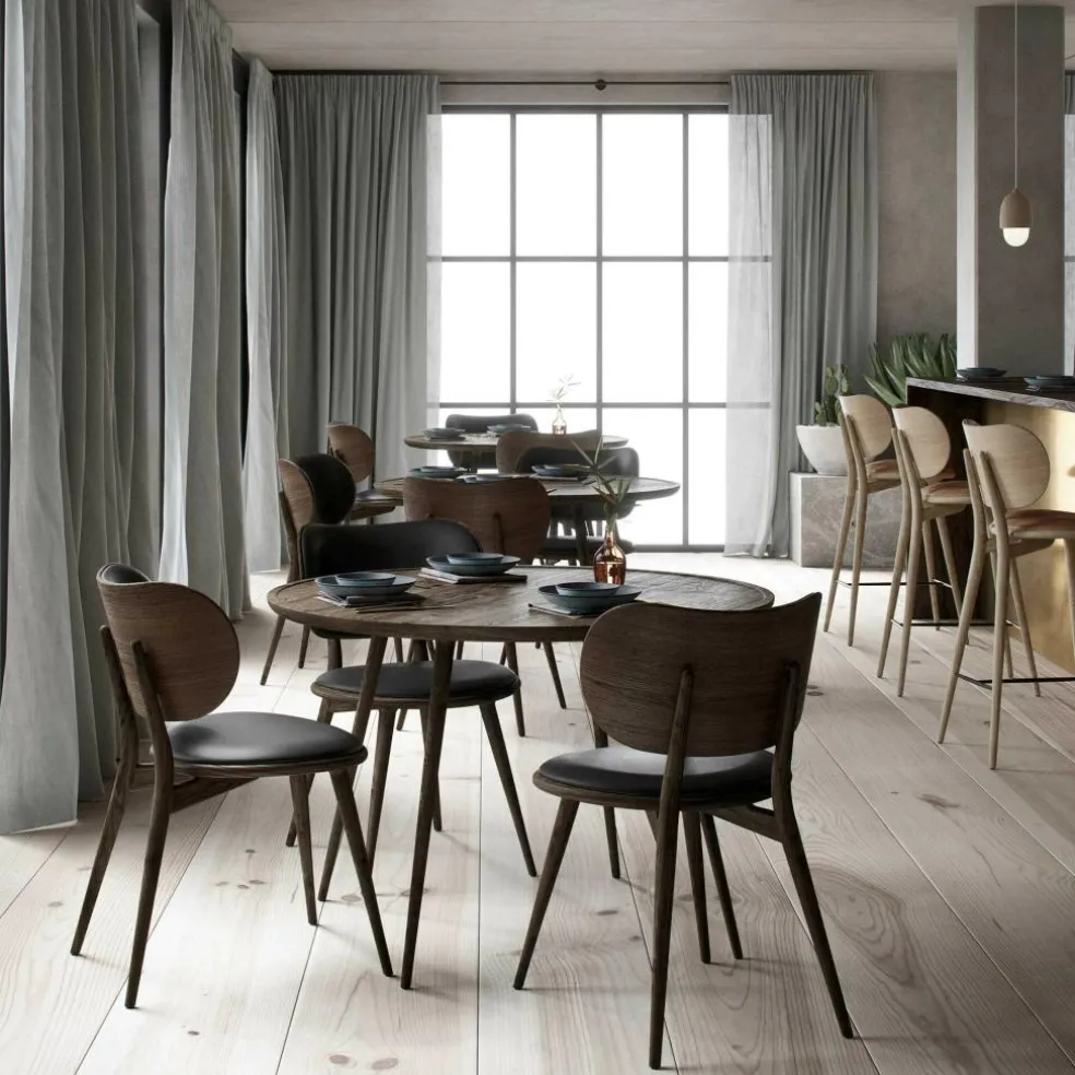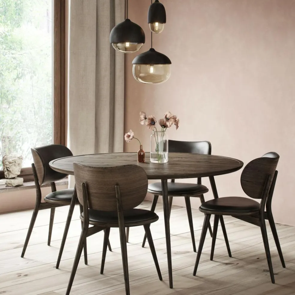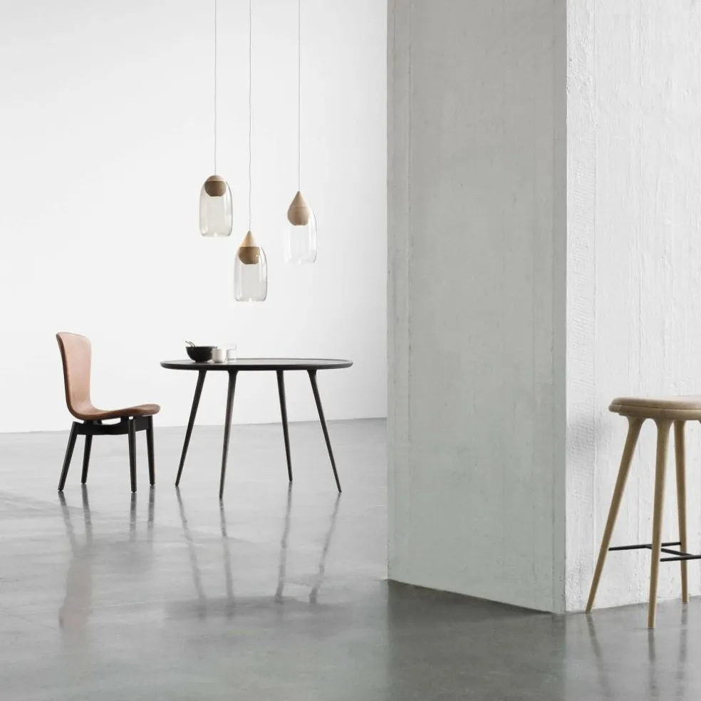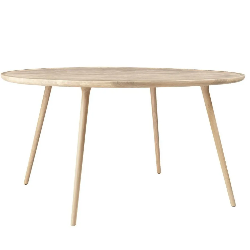 Der Accent Esstisch wurde von Space Copenhagen für die Marke Mater entworfen. Die Accent-Kollektion, die Tische in unterschiedlichen Größen umfasst, setzt wie der Name schon vermuten lässt Akzente in jeden Raum. Es gibt aus der Accent-Serie auch Couchtische.