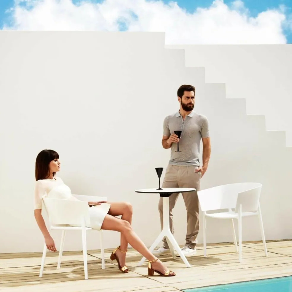 Das Africa Armlehnstuhl 4er Set ist eine stilvolle Sitzgelegenheit des Design-Experten Eugeni Quitllet für das Design-Label Vondom, das sich vor allem durch seine bewegte Gestalt und ihre hochwertige Verarbeitungsqualität auszeichnet.
