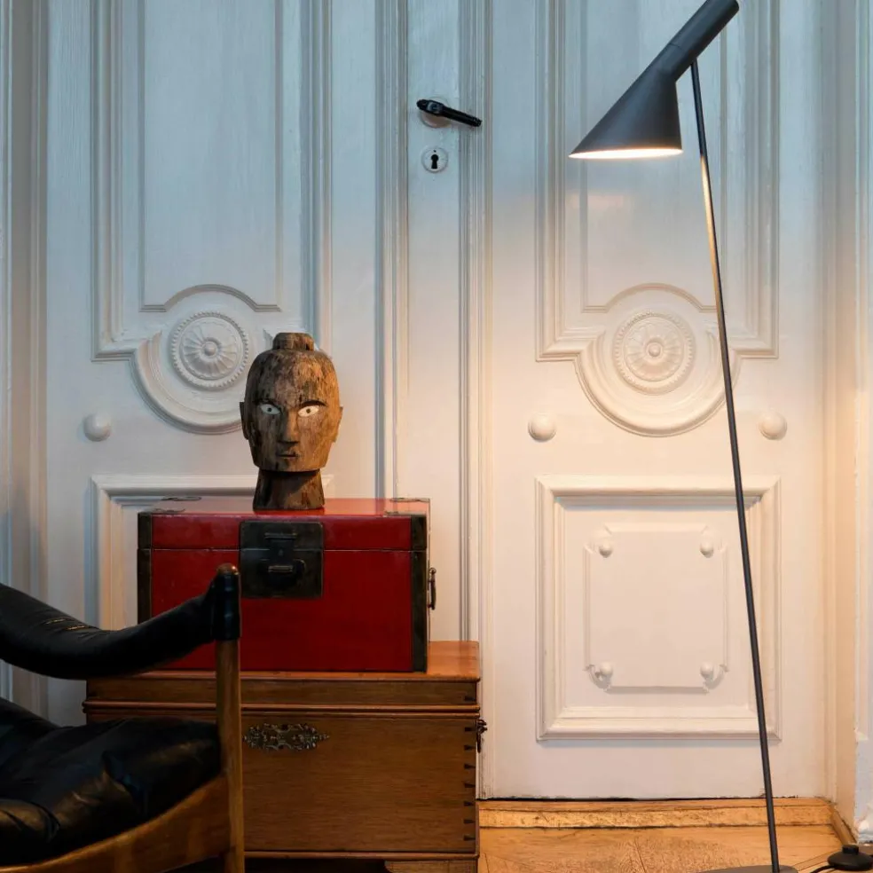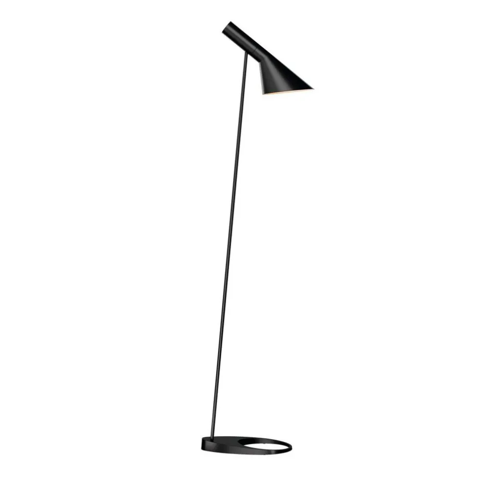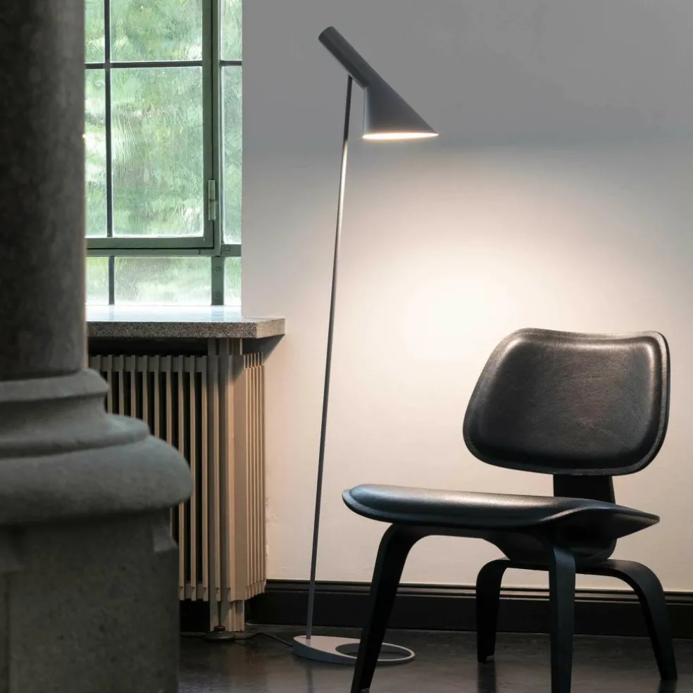 Die AJ Stehleuchte wurde von Arne Jacobsen für die Marke Louis Poulsen entworfen. Die Initialen des dänischen Designers sind namensgebend für die AJ-Kollektion, die 1957 für das SAS Royal Hotel in Kopenhagen entworfen wurde und heute zu den klassischen Designs für Wohnzimmer, Büro oder Flur zählt. Neben der AJ Stehleuchte zählt auch eine Tischleuchte zur Modellserie.