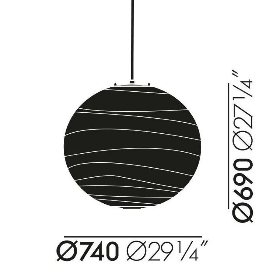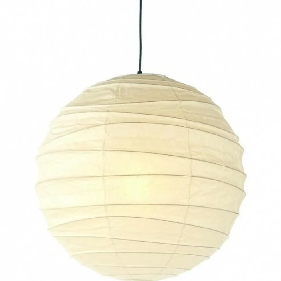 Für die Akari D Pendelleuchte wird ein Leuchtmittel mit E27-Fassung benötigt. Das Modell ist 69 cm hoch und hat einen Durchmesser von 74 cm. Zur Befestigung an der Decke dient ein filigraner Stahldraht. Aus derselben Kollektion gibt es Pendelleuchten in anderen Formen.