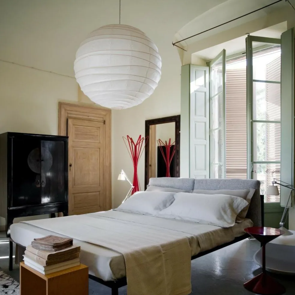 Die Akari D Pendelleuchte wurde von Isamu Noguchi für die Marke Vitra entworfen. Sie besinnt sich auf die lange Tradition asiatischer Papierleuchten. Wie ein Mond schwebt das filigrane Modell im Raum. Es bringt wohnliches Ambiente an jeden Einsatzort. Die auffallende Leuchte wurde im Jahr 2004 erstmals vorgestellt.