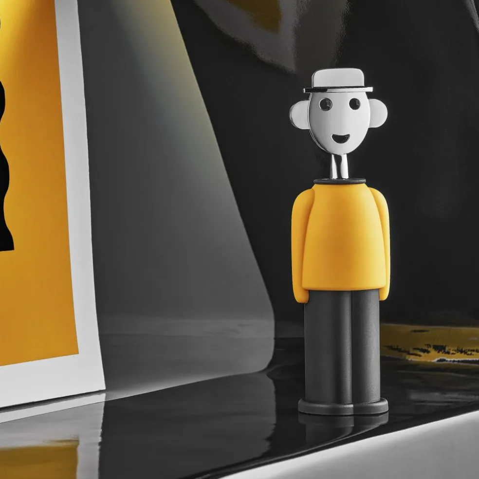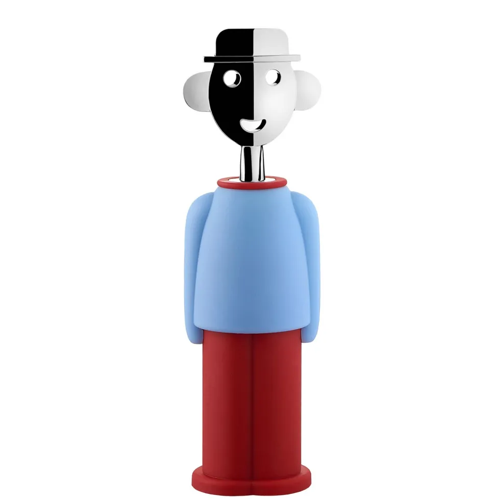 Der Korkenzieher Alessandro M. ist aus thermoplastischem Harz und verchromtem Zamak gearbeitet und stellt einen Mann mit Mütze dar. Charakteristisches Merkmal des Korkenziehers von Alessi ist das lächelnde Gesicht des Mannes, das im Laufe der Zeit zu einem Symbol wurde, aus dem viele andere Objekte für Küche und Tisch entstanden. Der Alessandro M. Korkenzieher ist ein schönes Accessoires und nützliches Utensil für Küche und Tisch&Tafel.