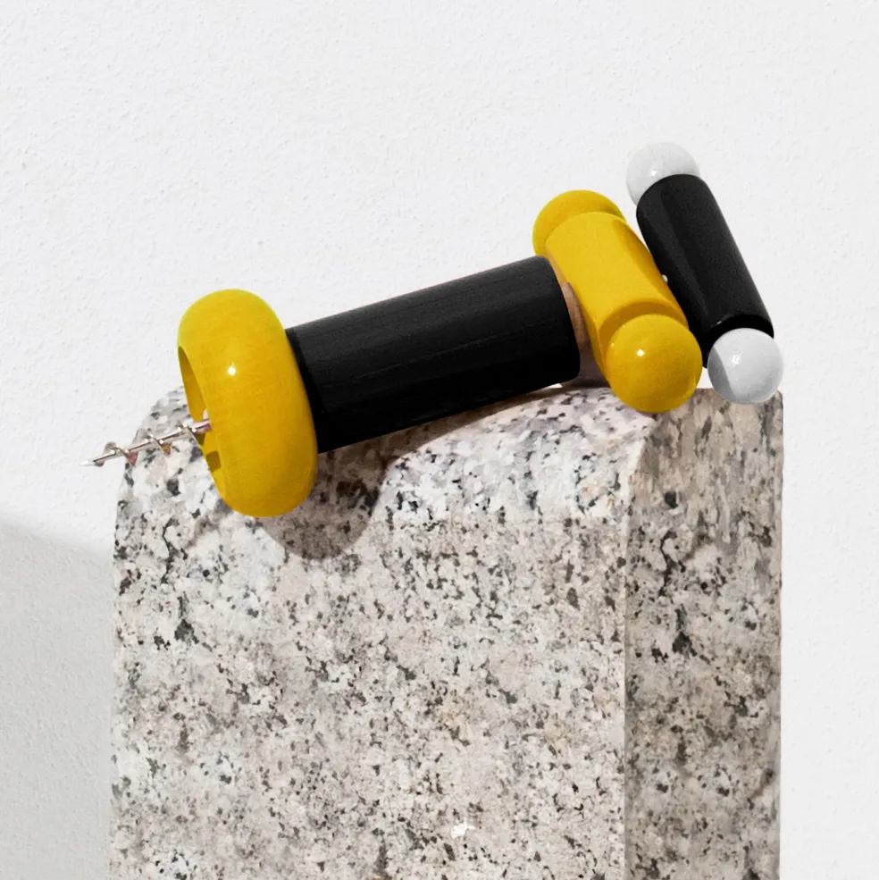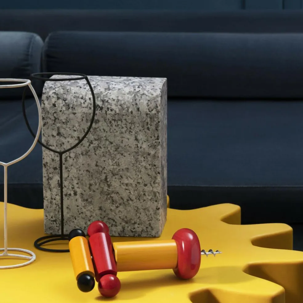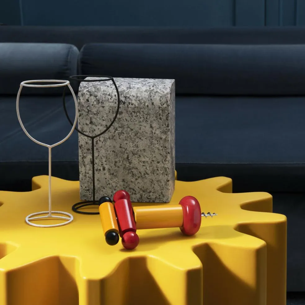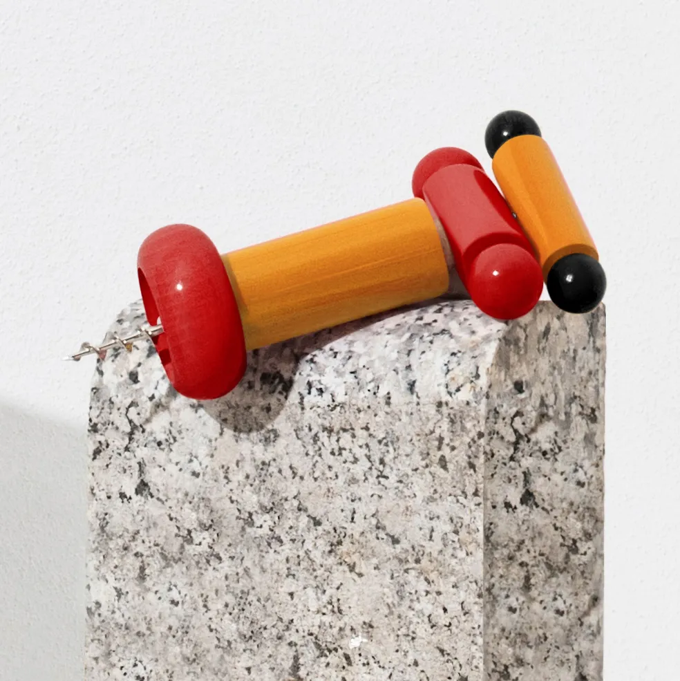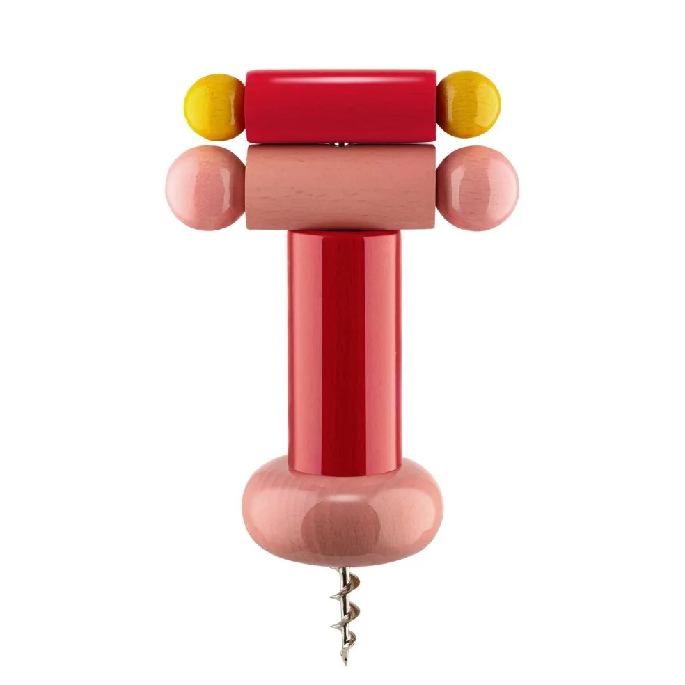 Der Alessi100 ES17 Korkenzieher ist die Neuauflage eines Designartikels, der von Ettore Sottsass für die Marke Alessi entworfen wurde. Zum 100-Jahr-Jubiläum des Herstellers wird er wieder herausgegeben. Das Original stammt aus 1989 und ist Teil einer Kollektion von funktionalen Helfern für den Küchenalltag. Deren Name Twergi bedeutet auf Deutsch Kobold, womit der Designer auf das witzige und farbenfrohe Aussehen anspielt.