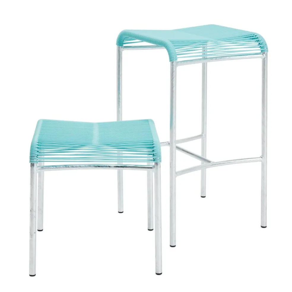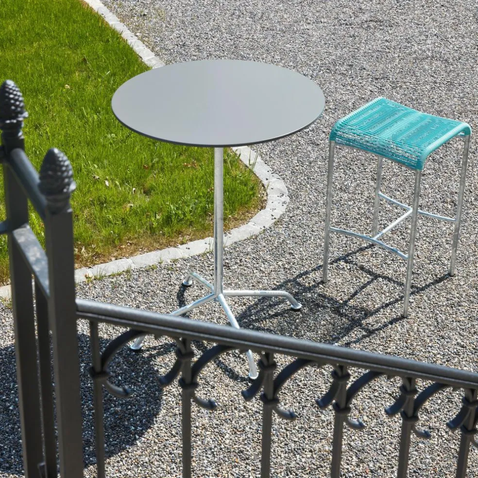 Seit 2019 hat die Altorfer-Serie Zuwachs bekommen: Der Altorfer Modell 1144 Garten Barhocker ergänzt die Kollektion, die niedrigere Hocker, Stühle und Liegen umfasst. Prämiert wurde sie im Jahr 1964 mit dem begehrten Schweizer Designpreis ‚Gute Form‘, der von Max Bill vergeben wurde. Die auch als Spaghetti bezeichnete Sitzfläche ist einzigartig: Sie besteht aus PVC-Schnüren, die in Handarbeit am Rahmen befestigt werden. Das Gestell besteht aus feuerverzinktem Stahl. Die vier geraden Füße sind an der Unterseite mit PE-Gleitern ausgestattet. Sie schützen empfindliche Balkon- und Terrassenböden. Der Altorfer Modell 1144 Garten Barhocker ist für jeden Tresen und die Poolbar eine Bereicherung. Der in verschiedenen Farben erhältliche Hocker ist robust und wetterfest. Im unteren Bereich des Gestells sind Querstreben montiert. Sie dienen zum Abstellen der Füße und tragen zum guten Sitzkomfort des Altorfer Modell 1144 Garten Barhocker bei.