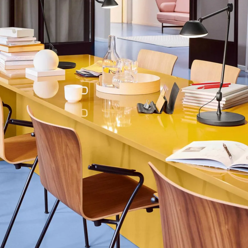 Das Design der Tischleuchte der Marke Fritz Hansen ist an die modernen Klassiker angelehnt. Es strahlt kühle Eleganz und Sachlichkeit aus. Der Stil passt nahezu zu jedem Einrichtungsstil. In moderneren Wohnungen ist er eine Ergänzung und in traditionell eingerichteten Häusern ein wohlplatzierter Kontrapunkt. Die Halterung der Leuchte ist dank vieler unterschiedlich angebrachter Gelenke sehr beweglich und individuell einsetzbar.