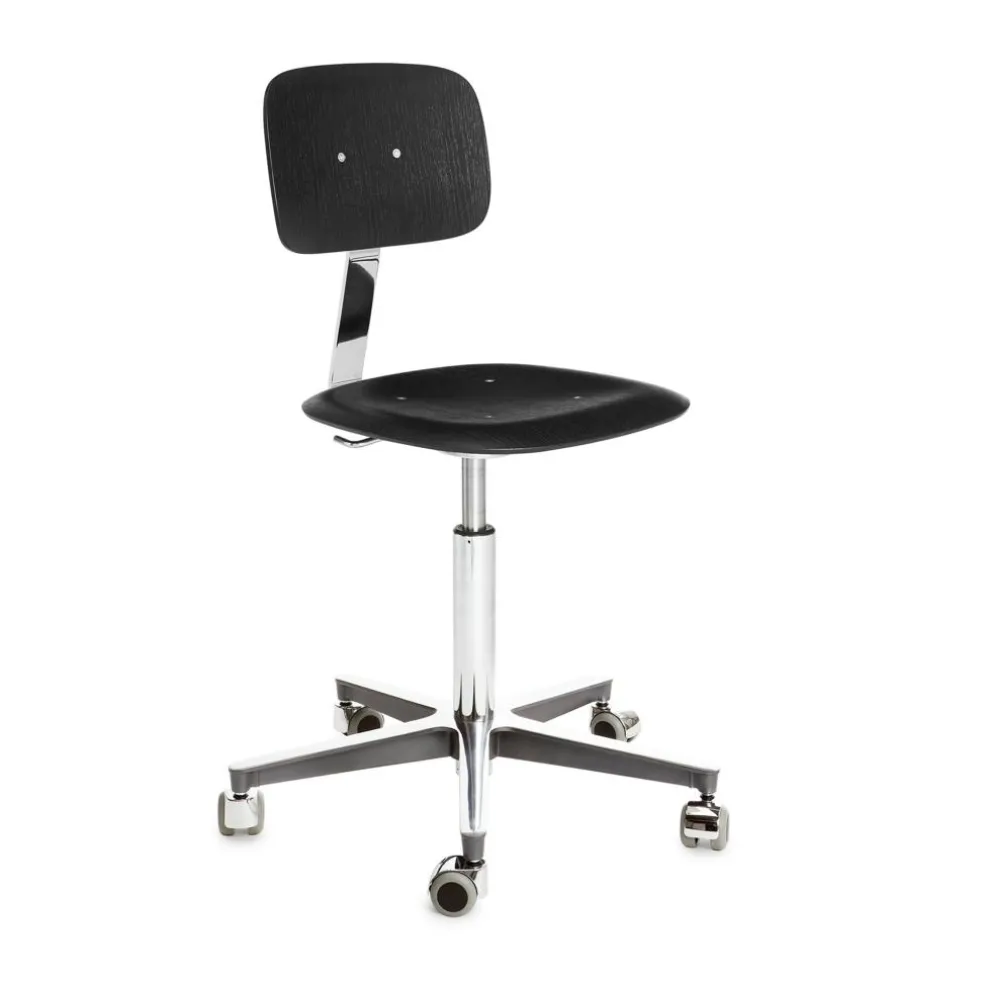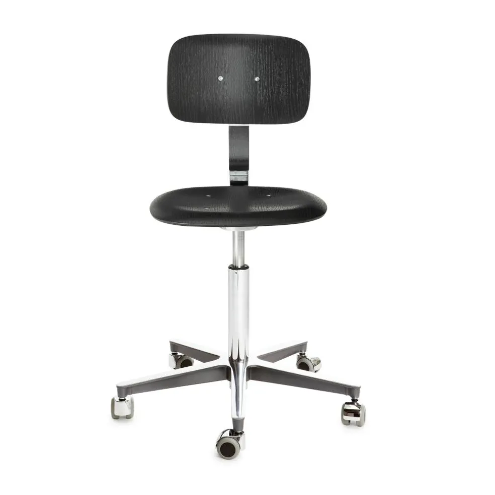 Stil und Eleganz verbreitet der Atelier Modell 2100 Bürostuhl am Arbeitsplatz. An der Unterseite des Fünfstern-Fußkreuzes befestigte Doppellenkrollen erleichtern die Navigation am Arbeitsplatz. Sie sind gebremst, wenn der Stuhl gerade nicht in Verwendung ist. Das Gestell besteht aus poliertem Aluminium und verchromtem Stahl. Außerdem lässt sich der Stuhl drehen. Da die Sitzfläche leicht nachgibt, ist der Sitzkomfort hervorragend. Die Rückenlehne ist in der Tiefe in zwei Stufen zu verstellen. Der Spielraum beträgt rund 3 cm. Die Sitzfläche ist bis zu 5 Grad in alle Richtungen neigbar. Für sie verwendet der Designer Kunstharzpressholz aus Buche. Die Oberfläche ist rutschhemmend. Der im Jahr 2012 vorgestellte Atelier Modell 2100 Bürostuhl ist in verschiedenen Farben zu haben.