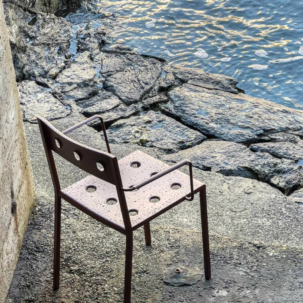 Der Balcony Gartenarmlehnstuhl wurde von Ronan & Erwan Bouroullec für die Marke HAY entworfen. Seitdem die Balcony-Serie im Jahr 2022 vorgestellt wurde, verbreitet sie im Garten, auf der Terrasse oder dem Balkon wohnliches Flair. Da es aus derselben Kollektion auch Bänke, Stühle und Tische gibt, kann die Gartengarnitur je nach persönlichen Vorstellungen und vorhandenem Platzangebot zusammengestellt werden.