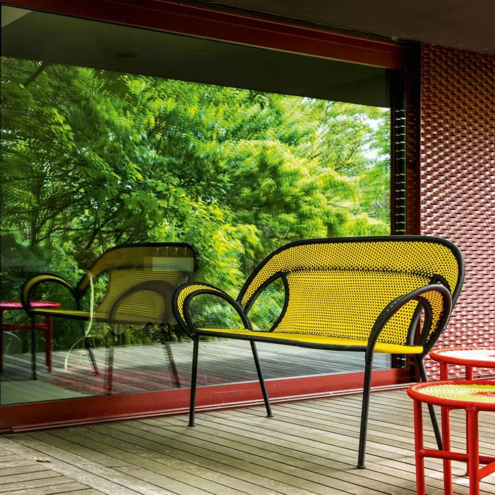 Das Banjooli 2-Sitzer Sofa ist von dem Designer Sebastian Herkner für den italienischen Hersteller Moroso Outdoor entworfen worden. Der kreative Ursprung liegt allerdings in Afrika: Hier ließ sich der Designer vom Hochzeitstanz des Straußes banjooli in der afrikanischen Steppe inspirieren. Das Straußenmännchen umgarnt das Weibchen mit seinen prächtigen Flügeln. Das verspricht auch dieses besondere Sitzmöbel – Platz für zwei und eine Farbenpracht, die alle Blicke auf sich zieht.